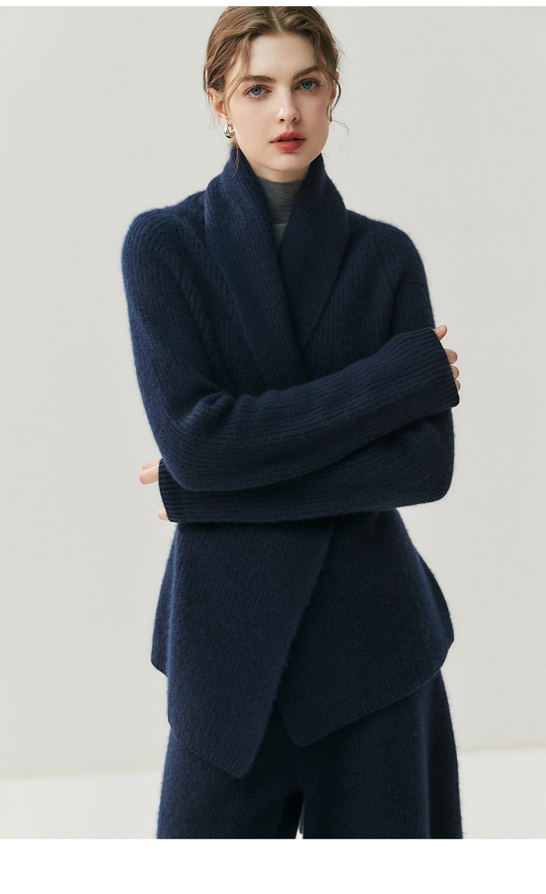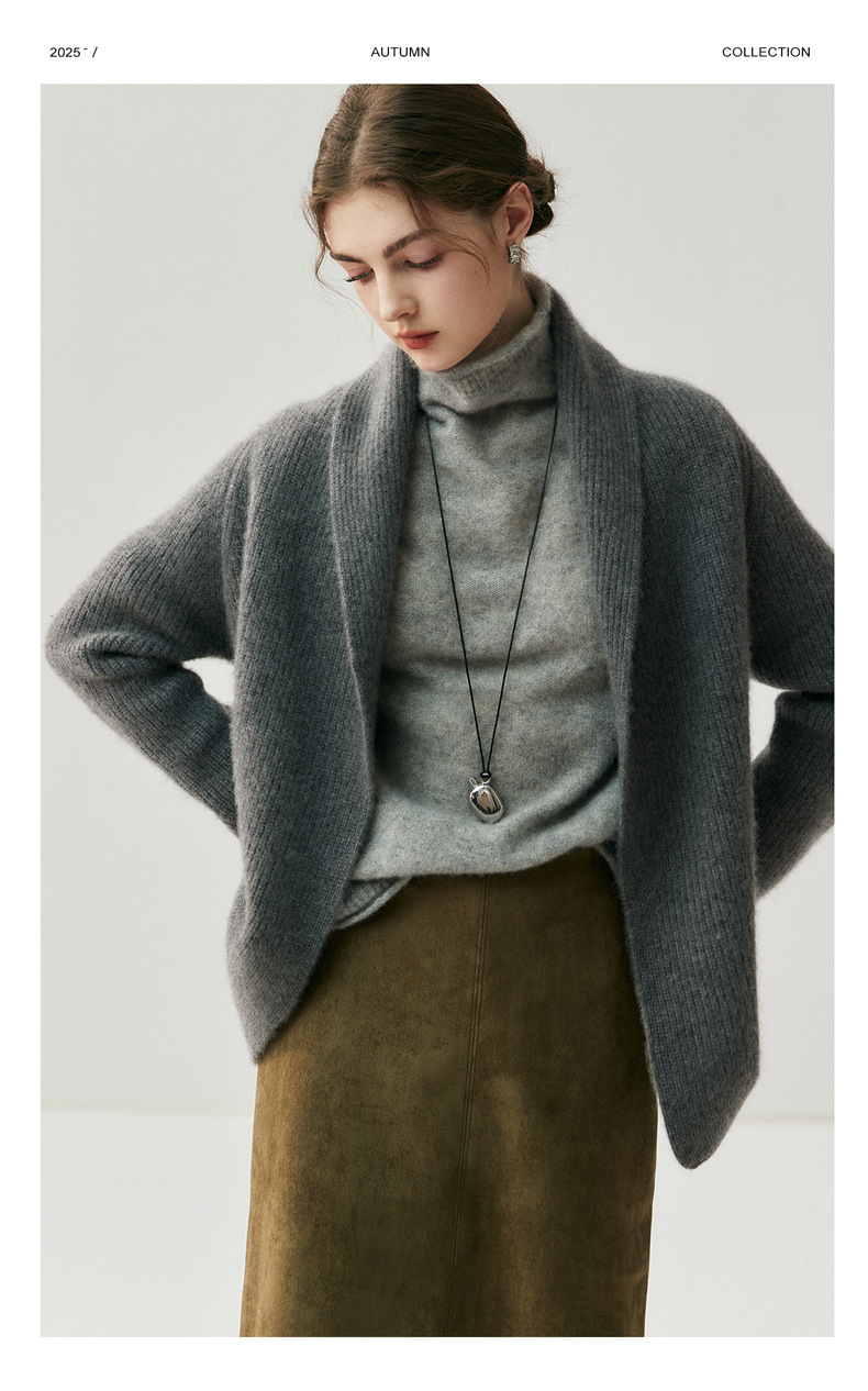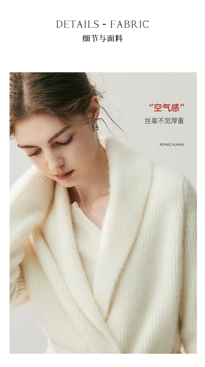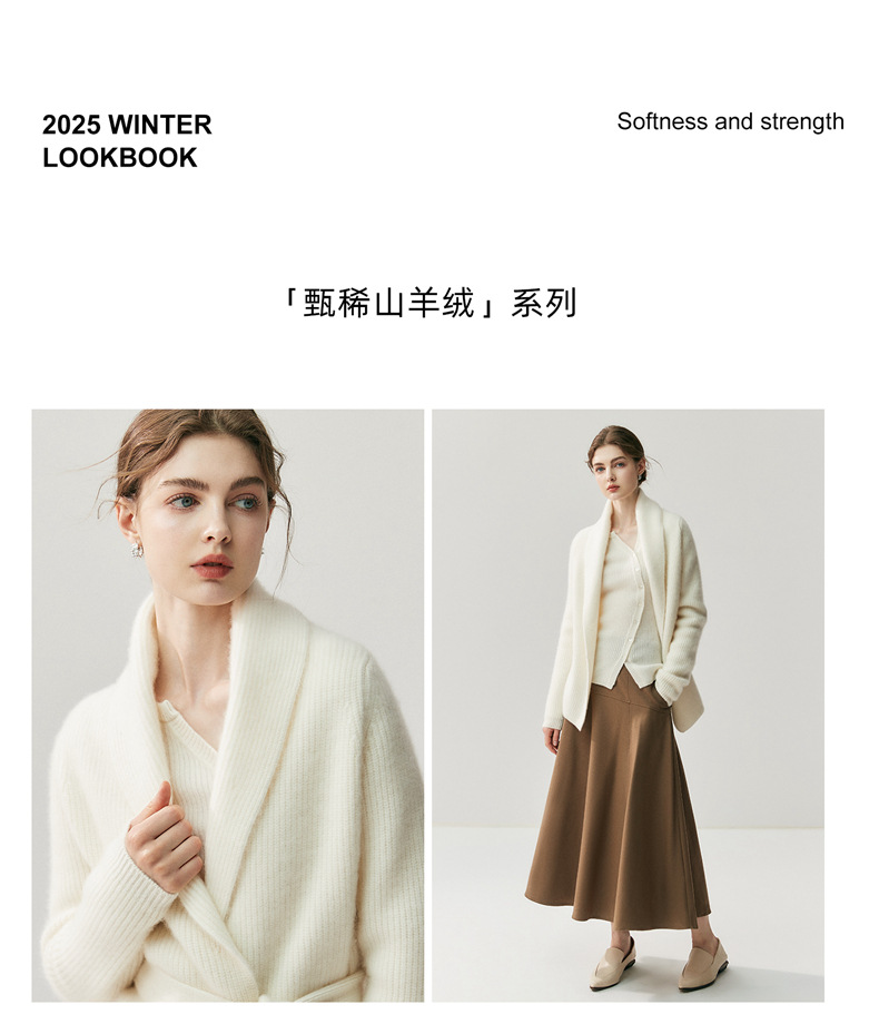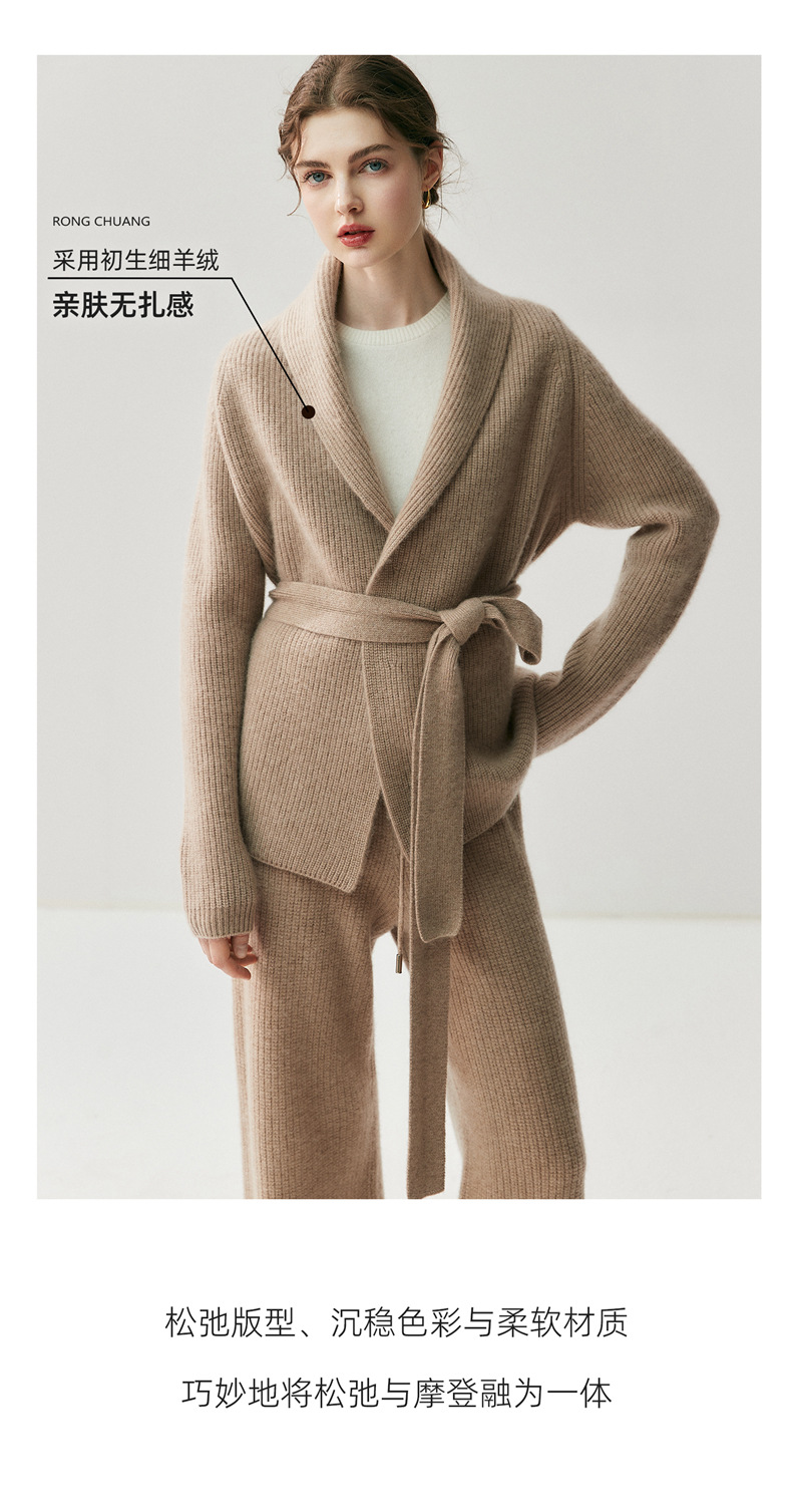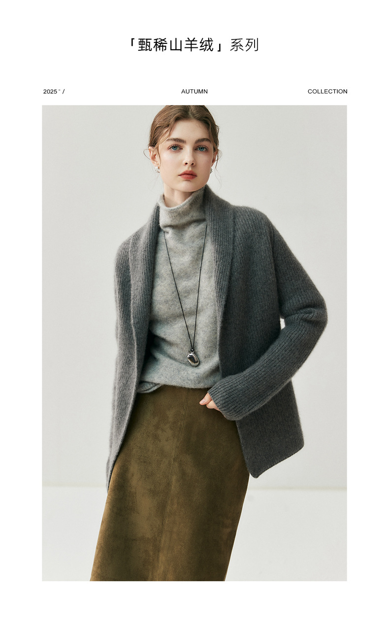 2025秋冬新款山羊绒开衫女浴袍式针织外套修身系带短款慵懒显瘦毛