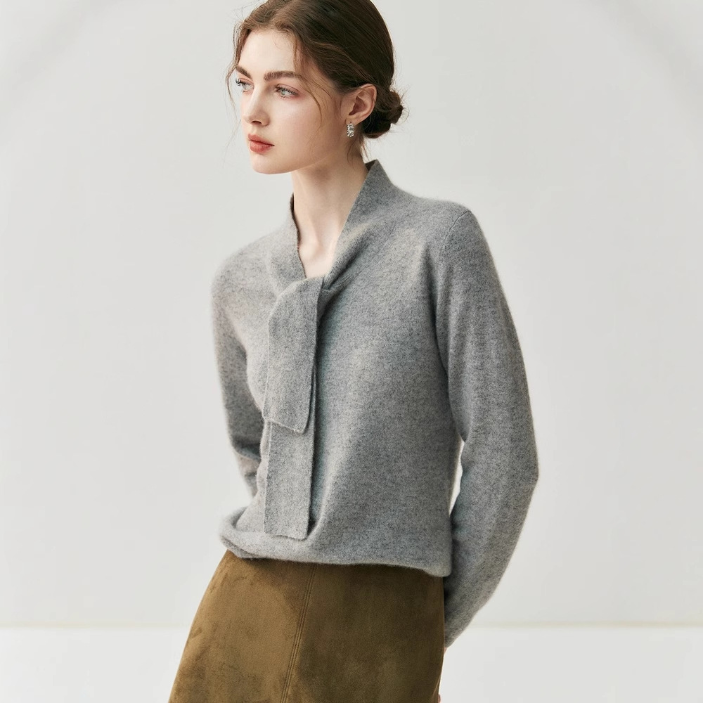 脱颖而出~自带飘带baby小山羊绒女V领宽松针织打底衫减龄羊毛毛衣
