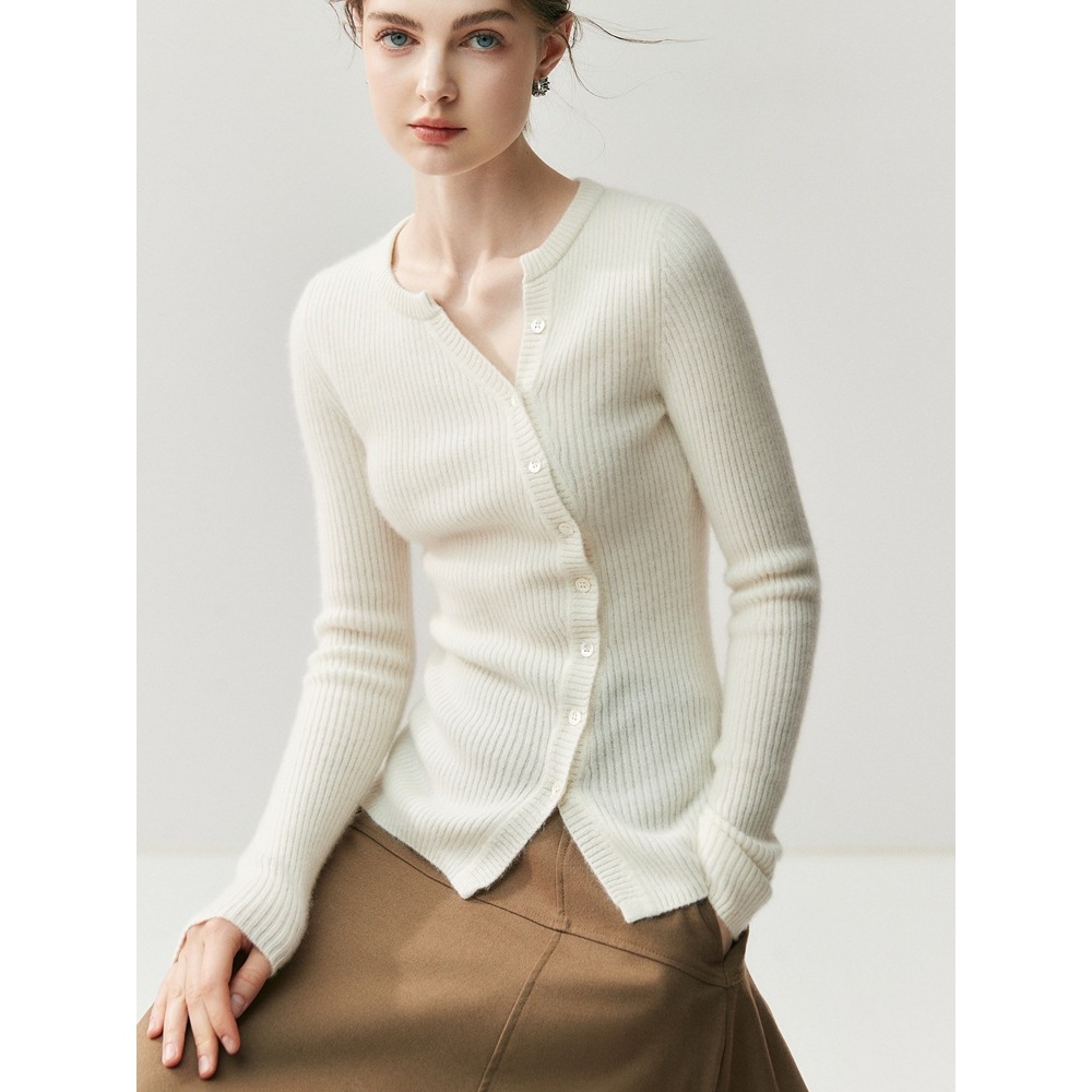 小众韩系修身纯色斜口单排扣开衫女山羊绒针织外套显瘦百搭软糯厚