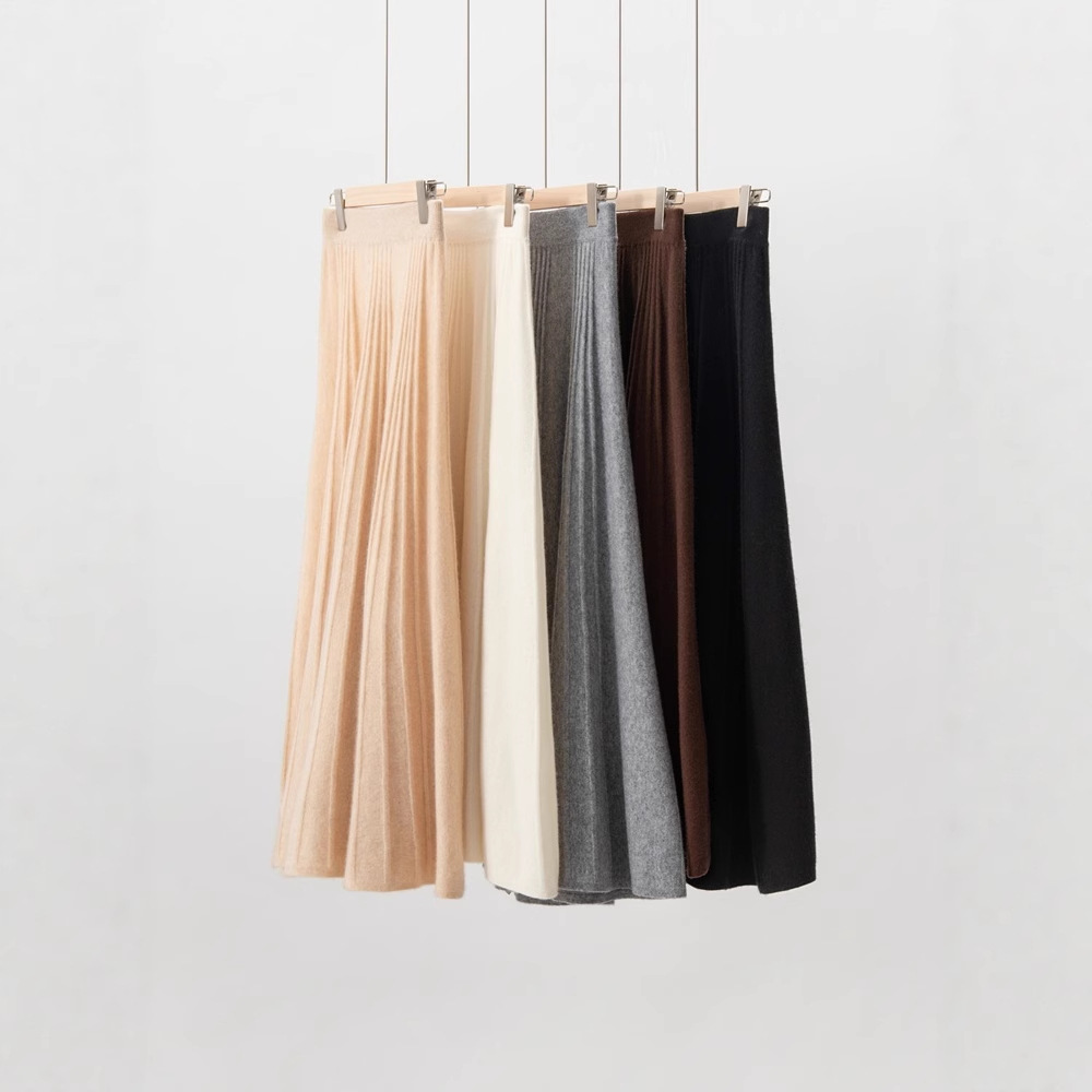 百褶山羊绒针织鱼尾半身裙女秋季高腰A字包臀裤感中长款大摆裙