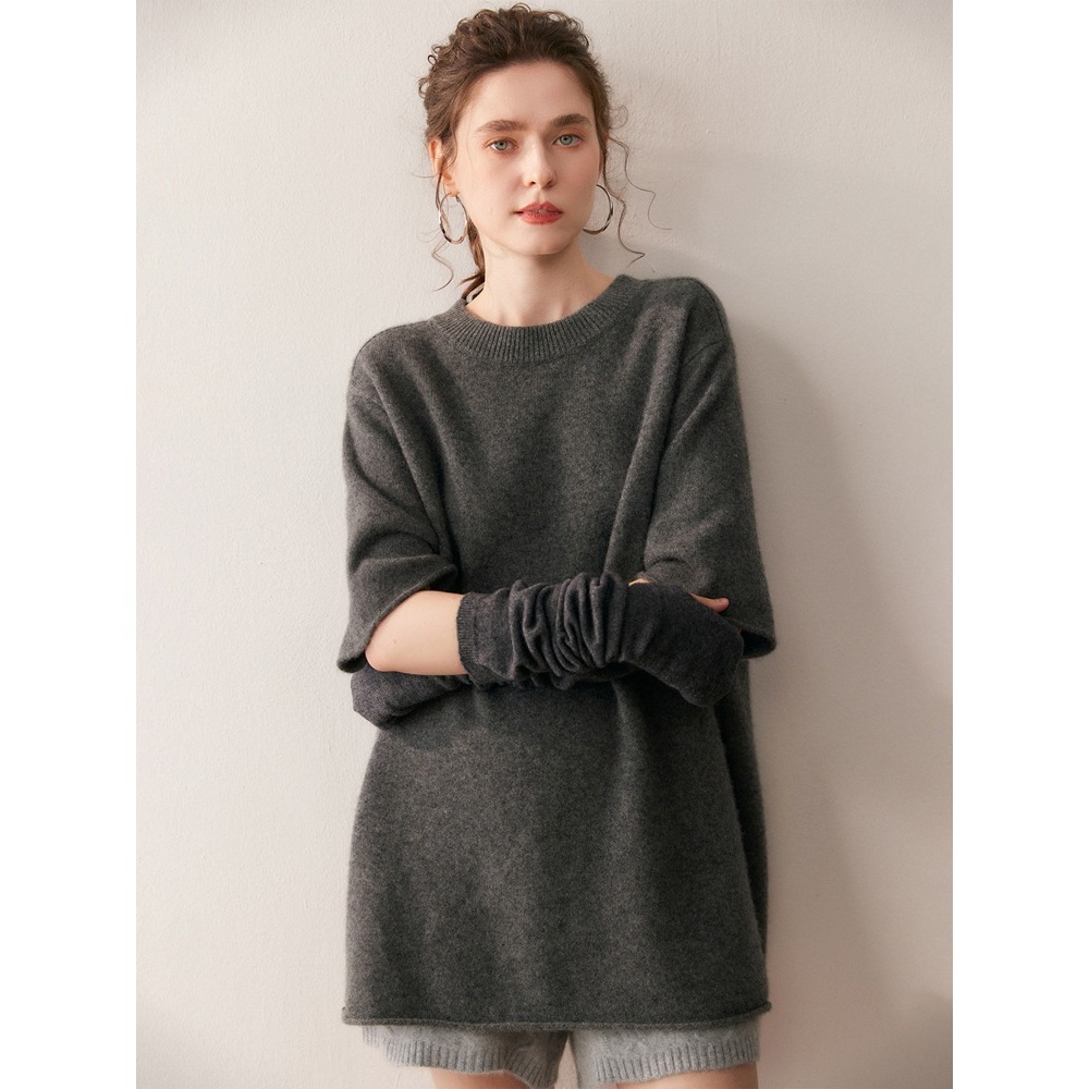 十二针纯色山羊绒女针织打底衫宽松显瘦套头毛衣内搭软糯亲肤上衣