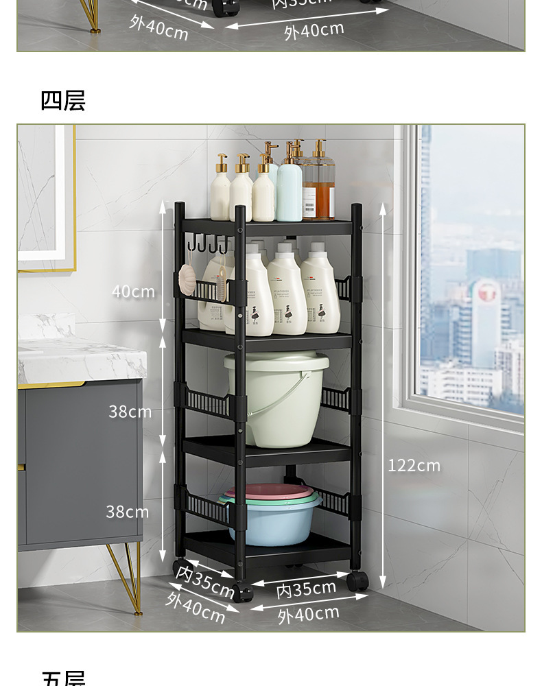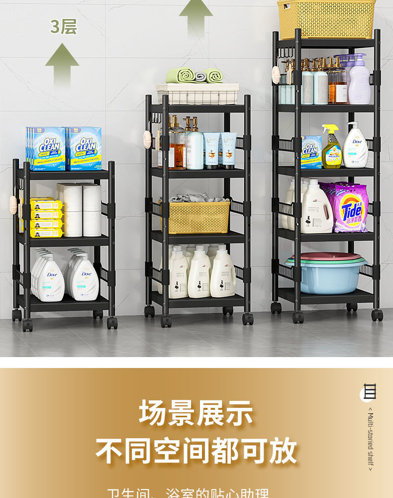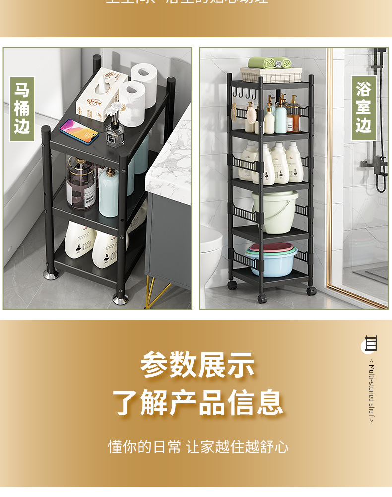 卫生间多层置物架浴室厨房洗手间夹缝储物洗衣液收纳架落地收纳柜
