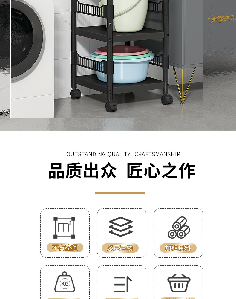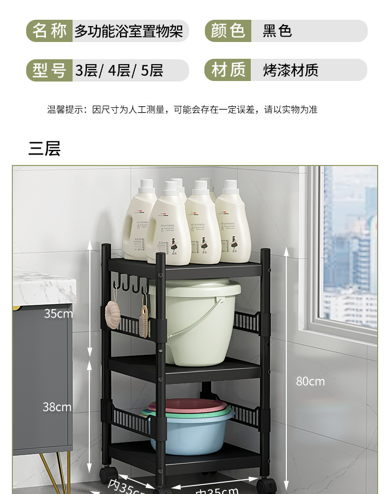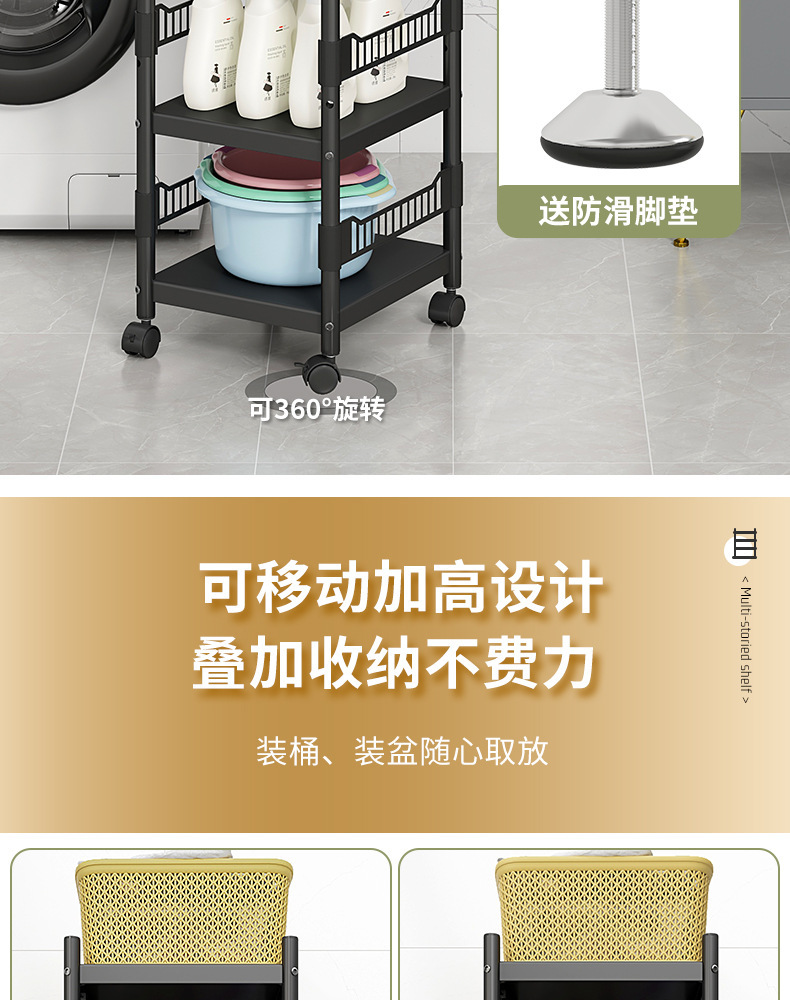 卫生间置物架落地多层洗衣机边洗衣液小推车收纳移动浴室储物架子