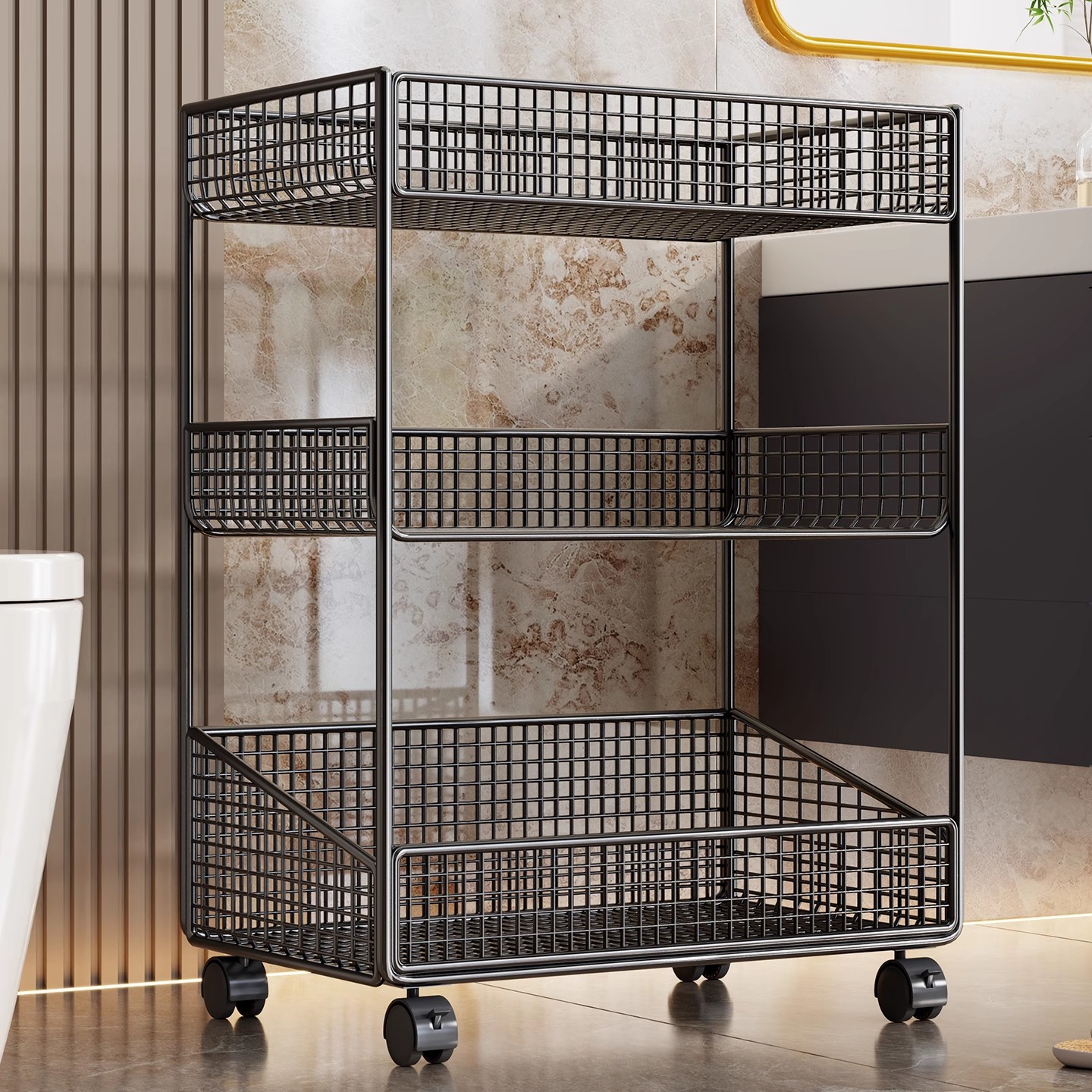 浴室棚床置き式洗面器収納棚トイレ多層移動式電子レンジ挟み収納棚