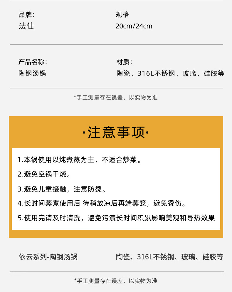 【20cm汤锅】陶钢一体 防锈抑菌 2-3人适用,【22cm汤锅】陶钢一体 防锈抑菌 2-6人适用,【24cm汤锅】陶钢一体 防锈抑菌 2-6人适用,【26汤锅】陶钢一体 防锈抑菌 3-7人适用,【20cm汤锅+304不锈钢蒸笼】 蒸煮两用 2-3人适用,【22cm汤锅+304不锈钢蒸笼】大容量蒸煮两用 2-6人适用,【24cm汤锅+304不锈钢蒸笼】大容量蒸煮两用 2-6人适用,【26cm汤锅+304不锈钢蒸笼】大容量蒸煮两用 3-7人适用,20cm不锈钢蒸笼,22cm不锈钢蒸笼,24cm不锈钢蒸笼,26cm不锈钢蒸笼