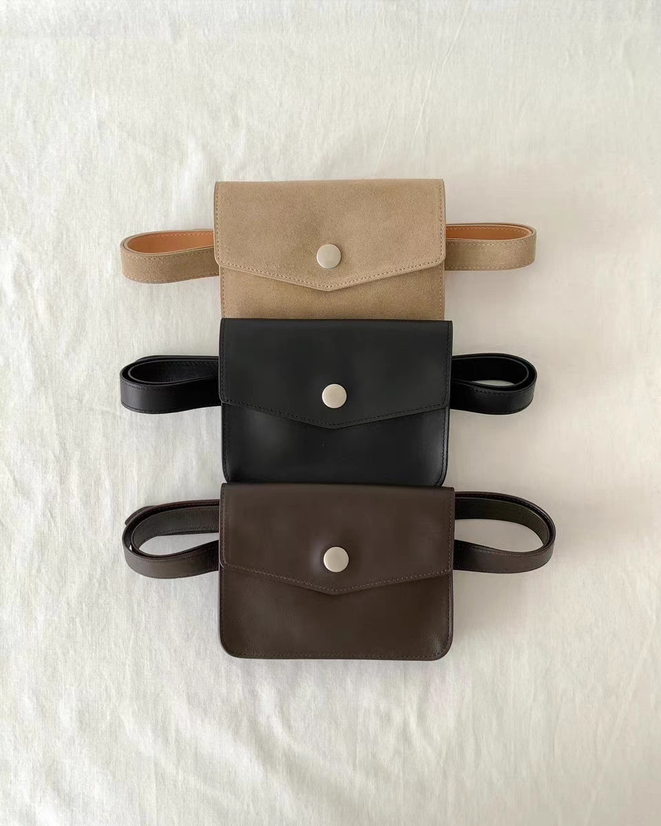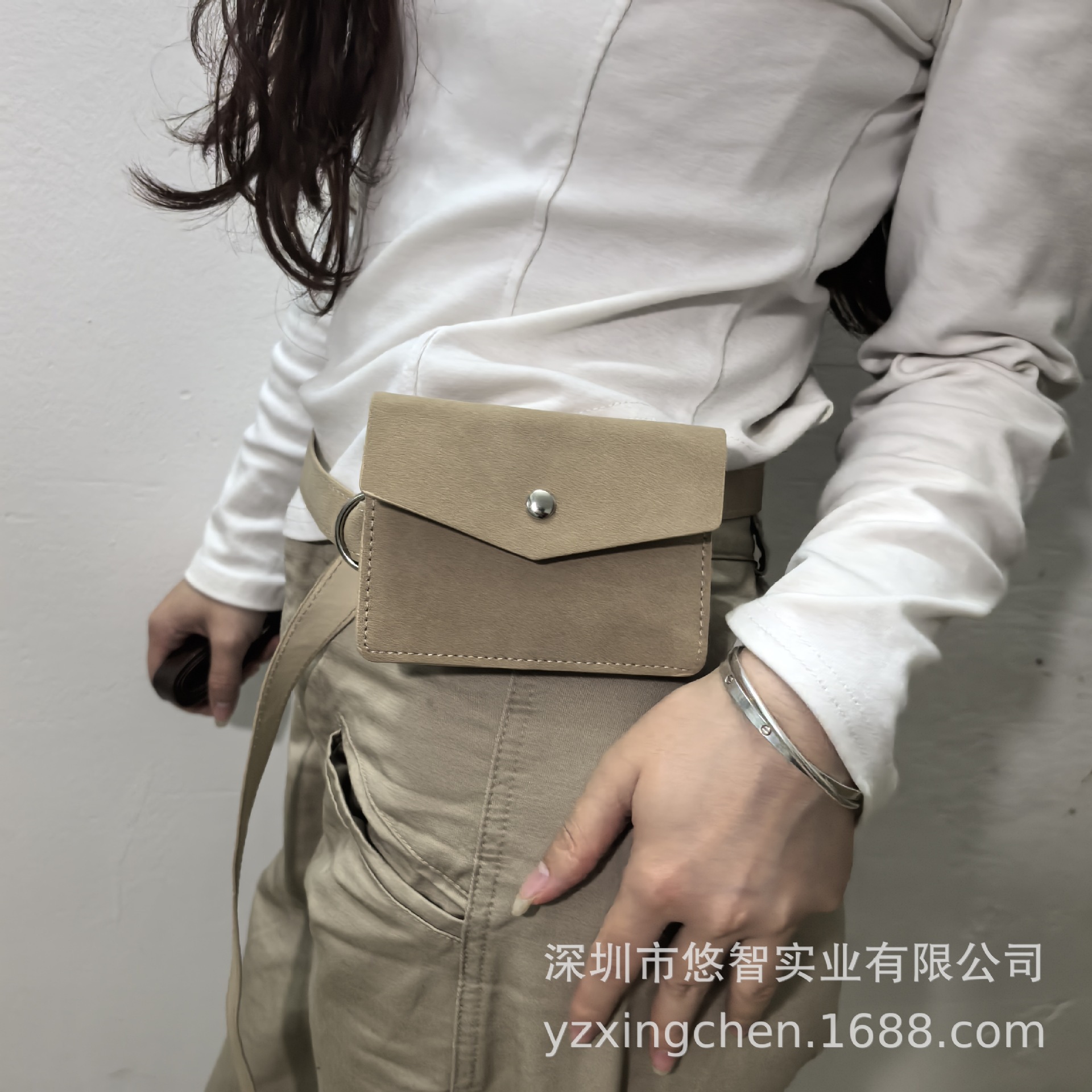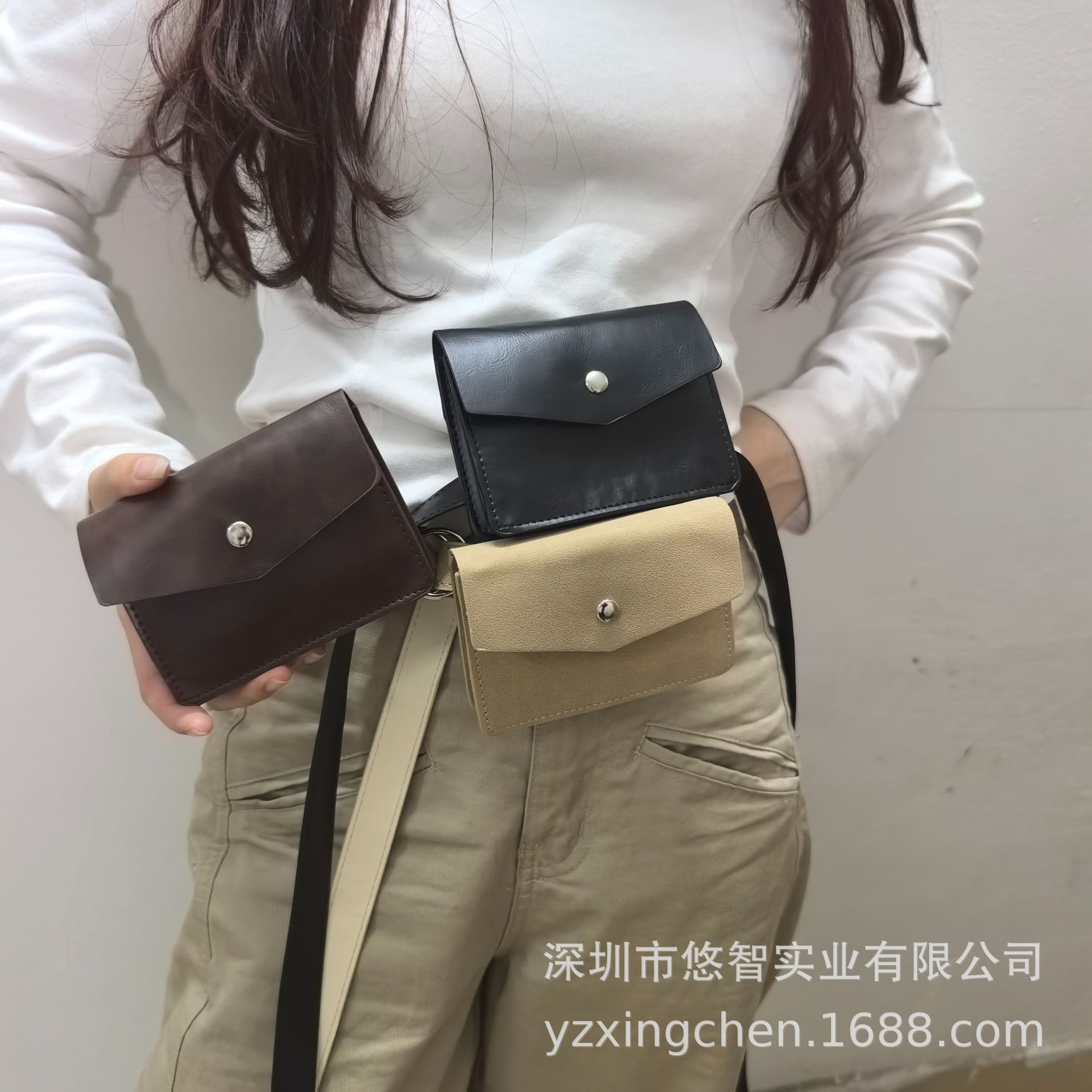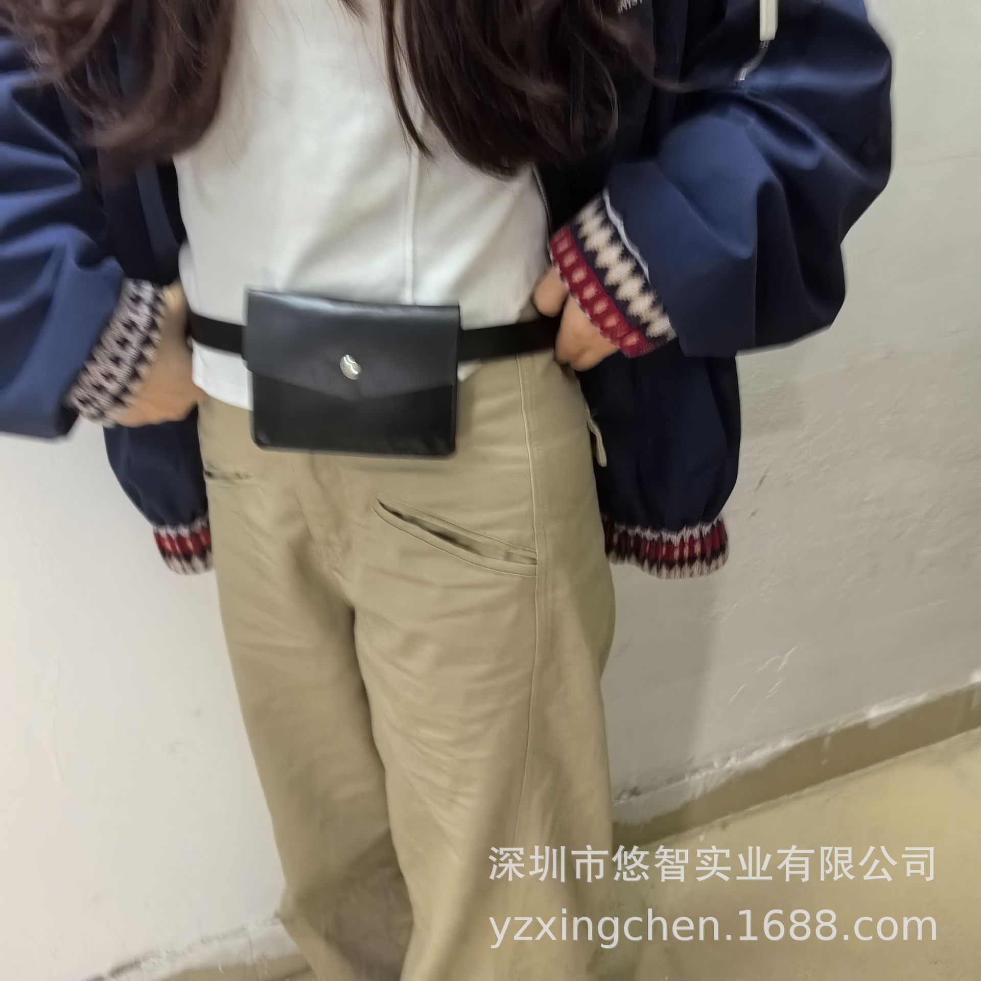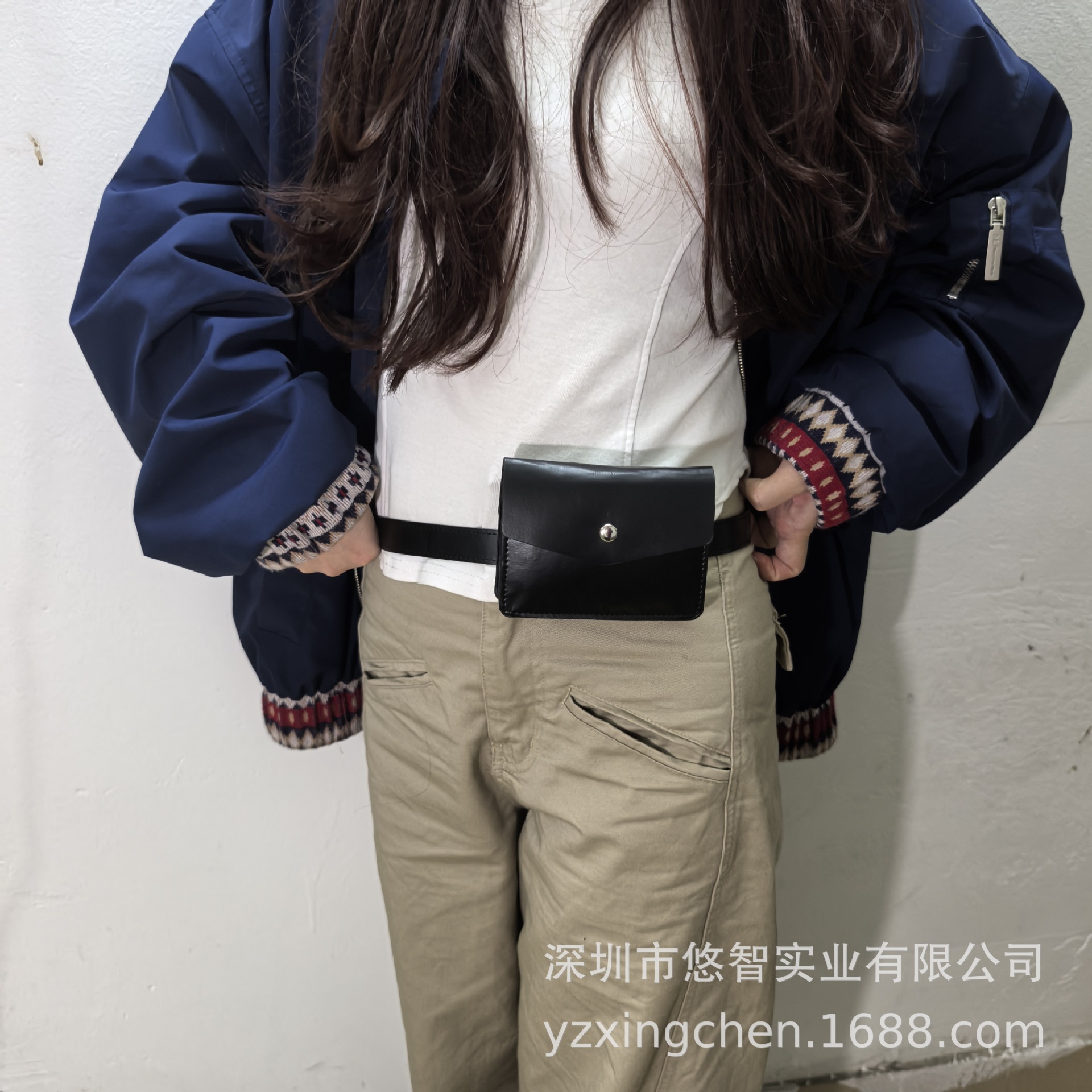 韩国网红博主同款高级感腰包 油蜡皮质感腰包女 凹造型街拍搭配包