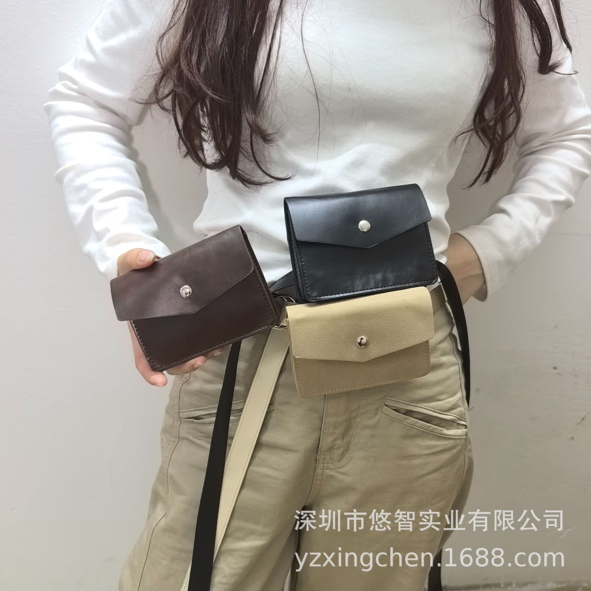秋冬新款纯色简约穿搭多用腰带 挂脖包韩系腰包女 斜挎迷你小方包
