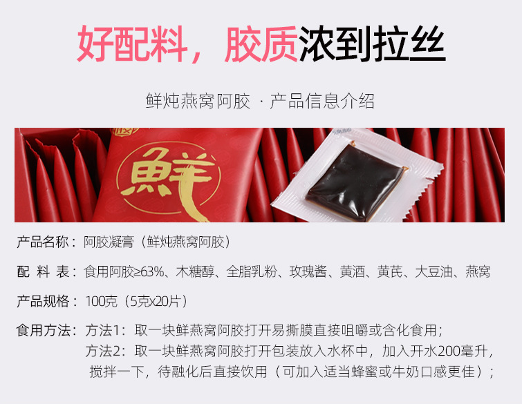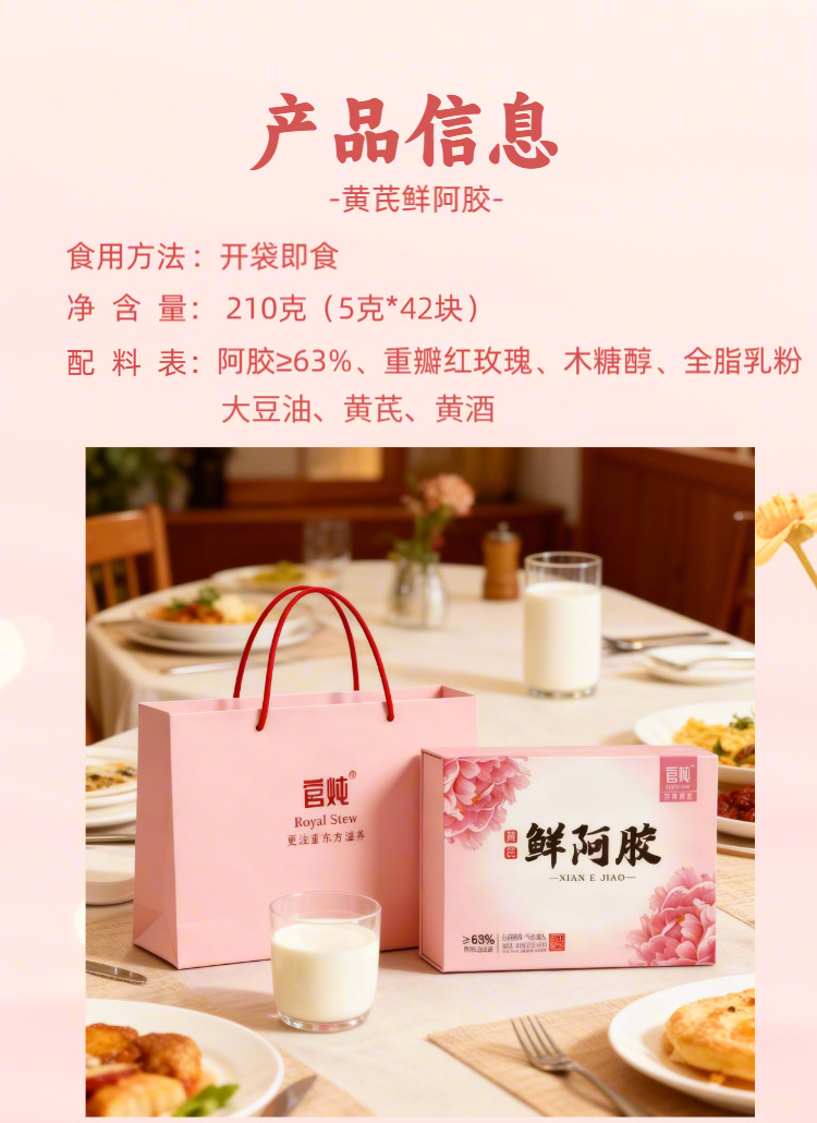 黄芪鲜阿胶即食鲜制小鲜胶阿胶凝膏阿胶块工厂山东特产送长辈礼品
