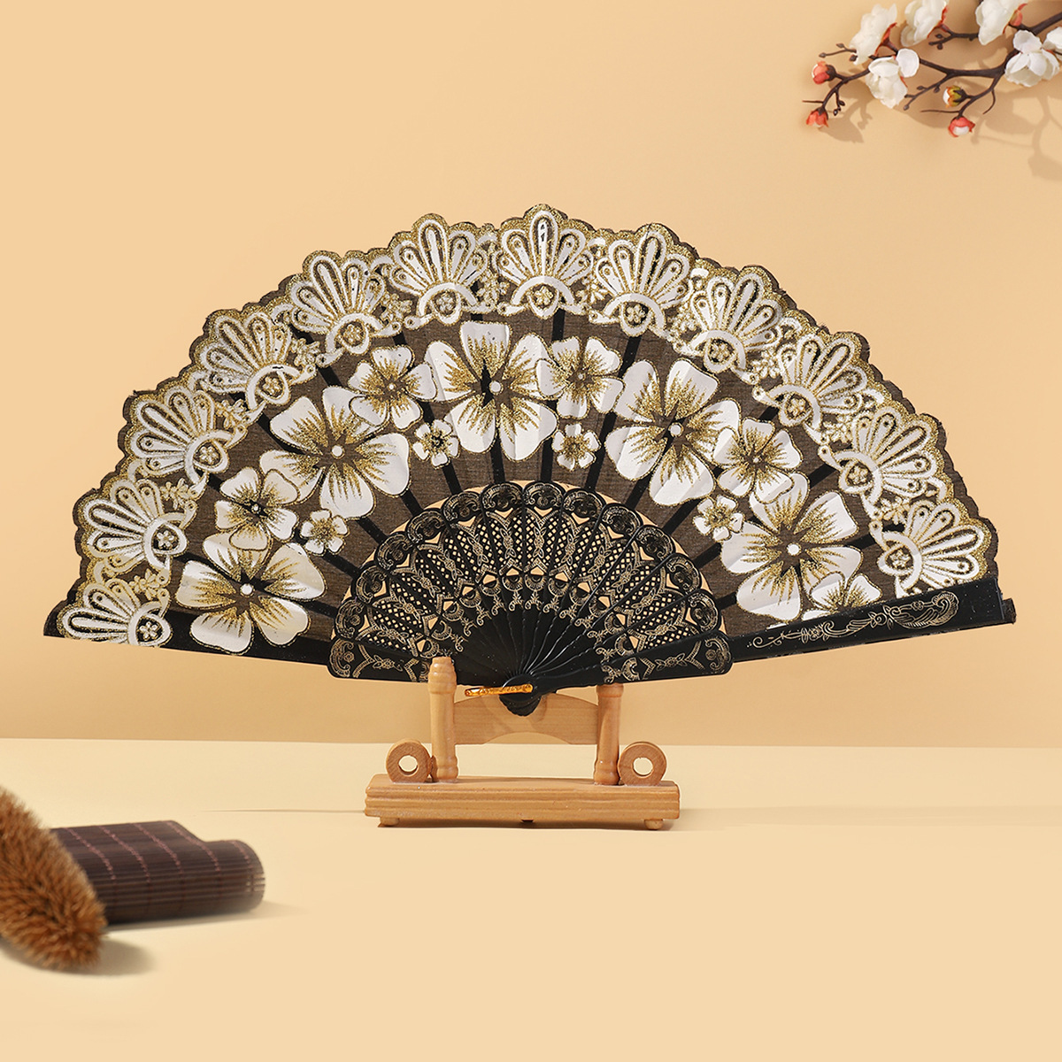 中国風レース扇子プリント金辺折り畳み扇メーカー直販古風舞踏扇美しいギフト扇卸売り