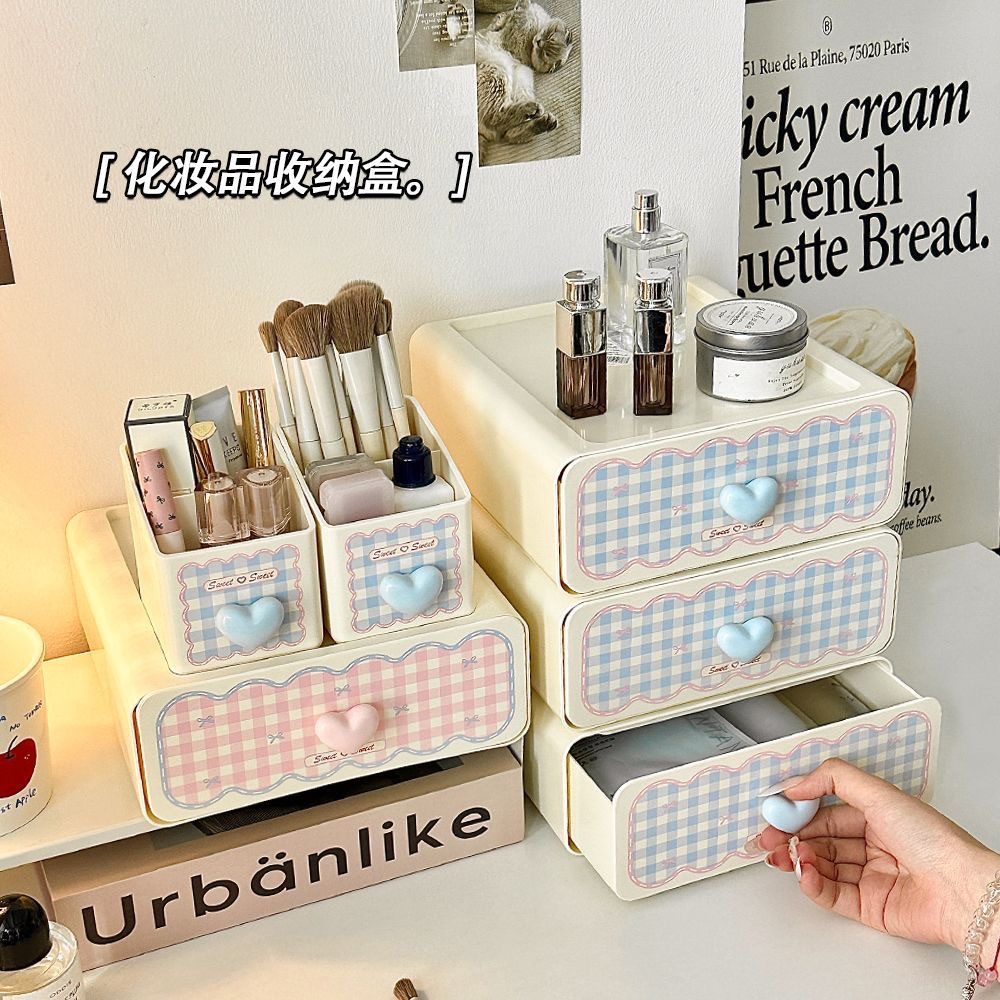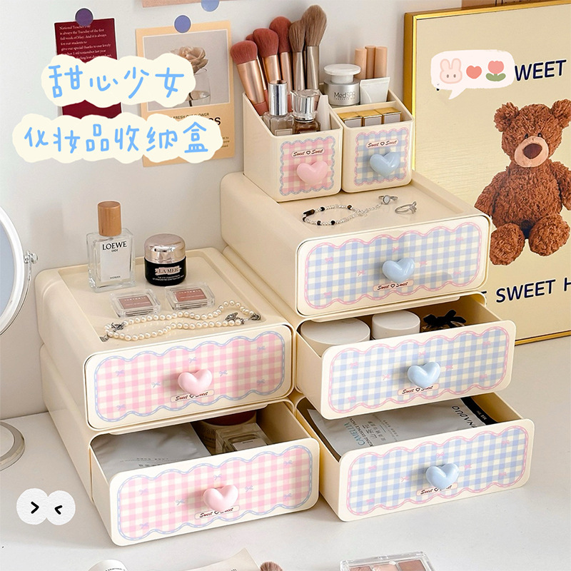 ins奶油风化妆品桌面收纳盒女孩款高颜值梳妆台大容量抽屉储物盒