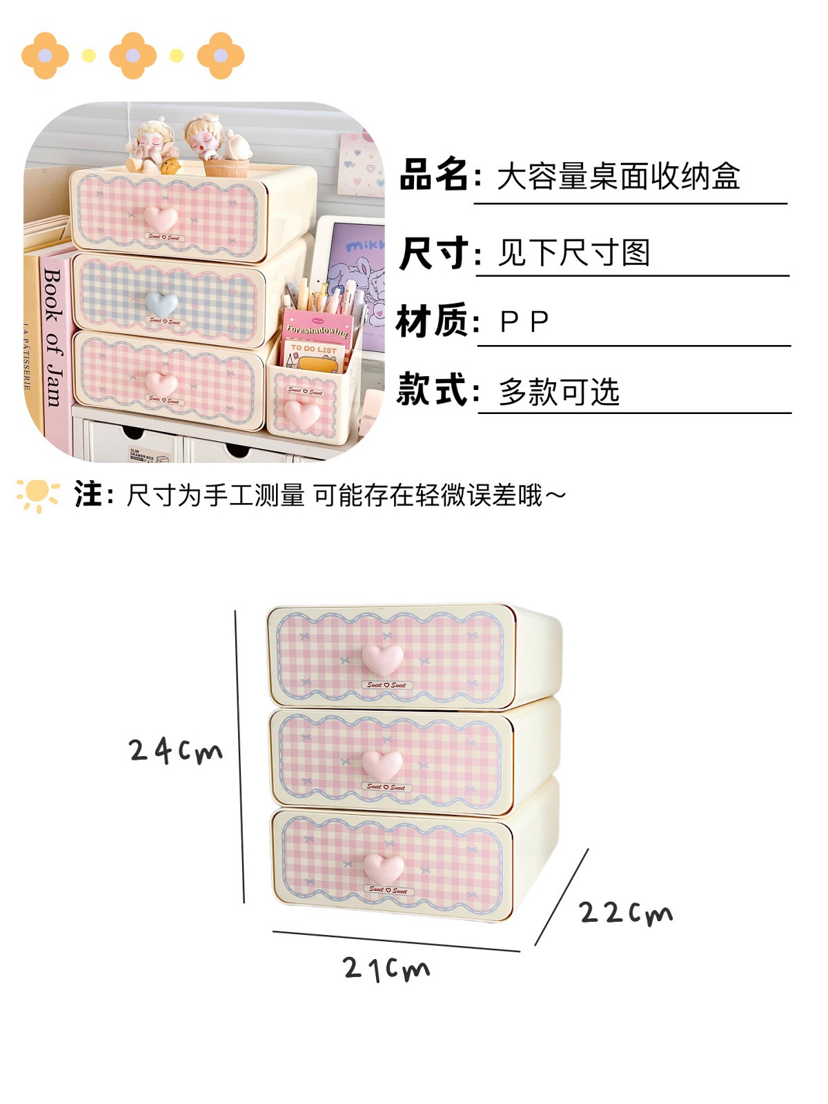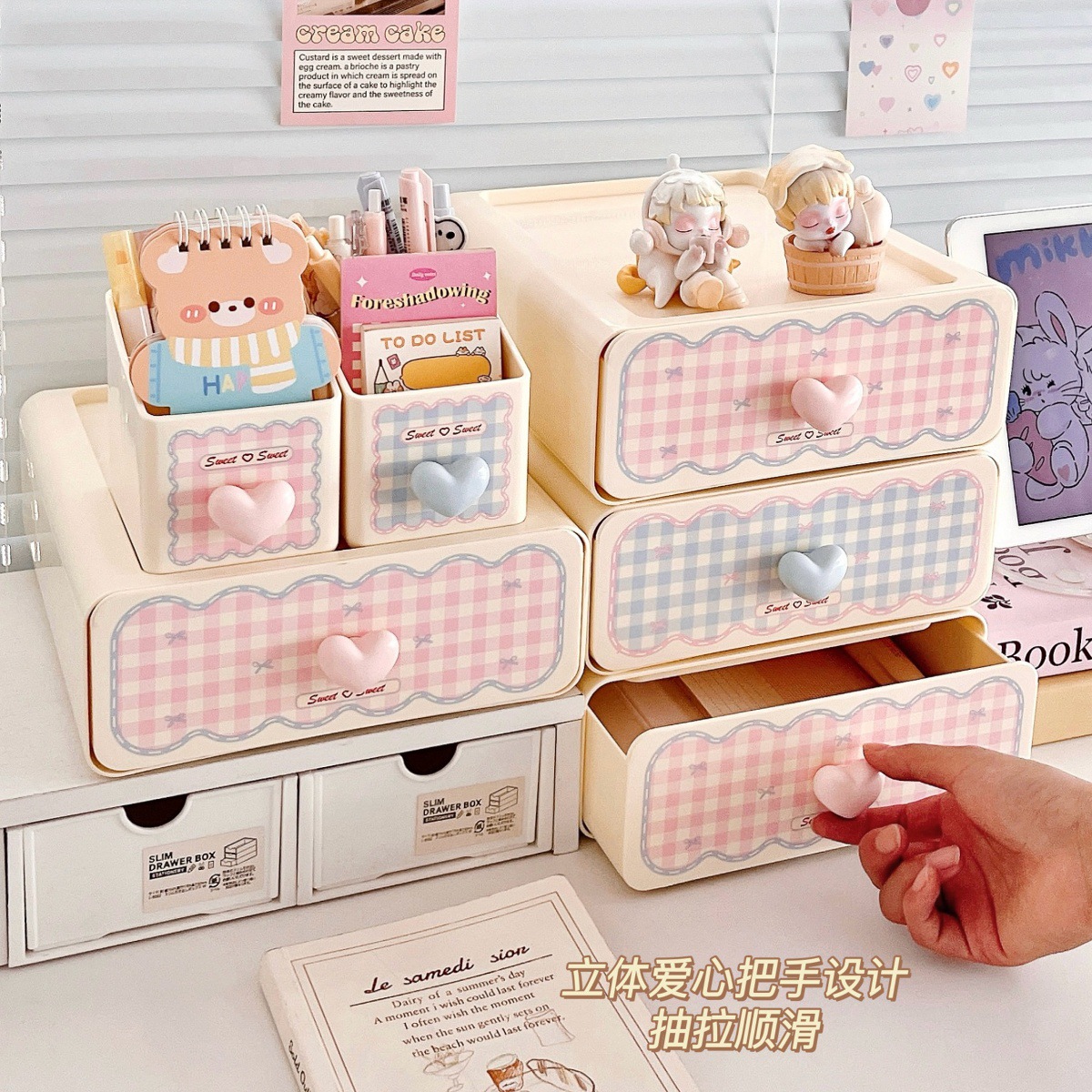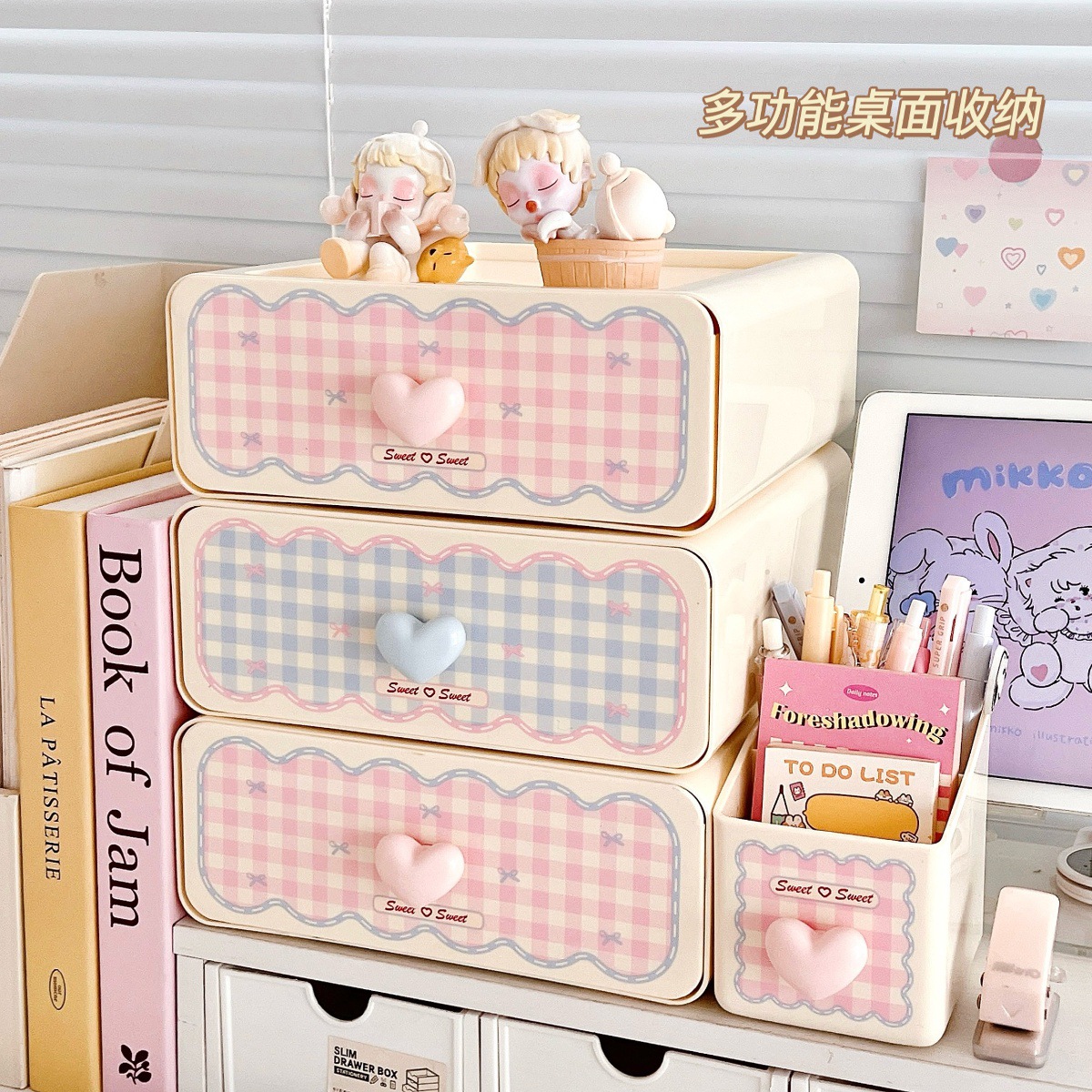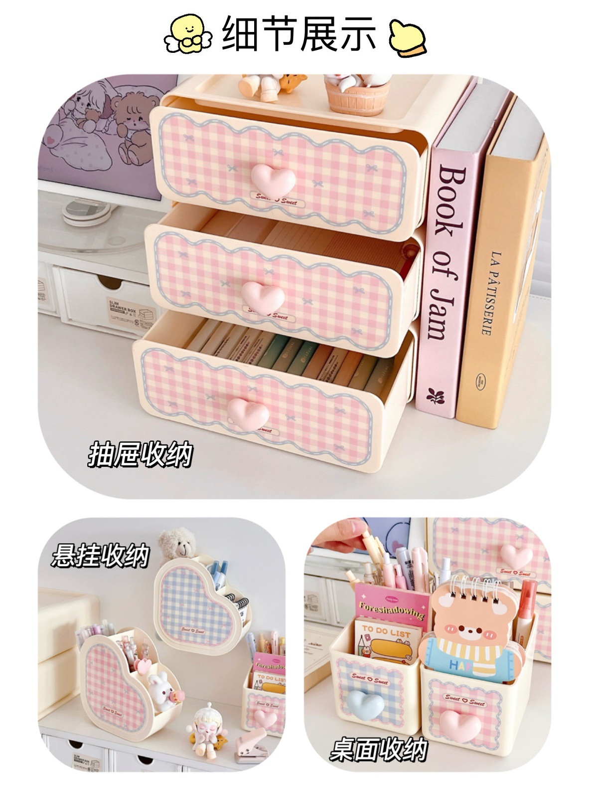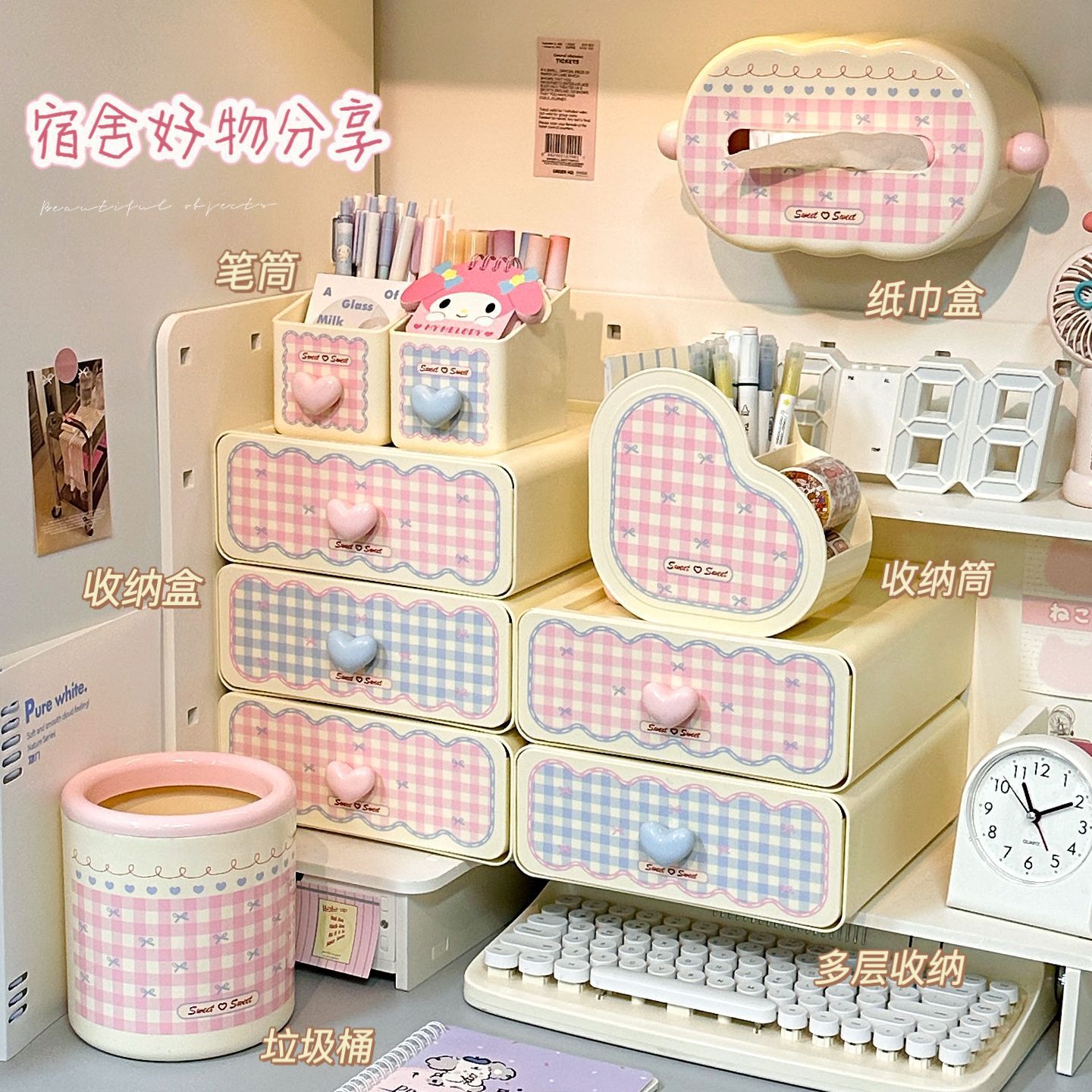 甜心少女抽屉式收纳盒粉嫩桌面置物架化妆刷筒收纳办公杂物整理架