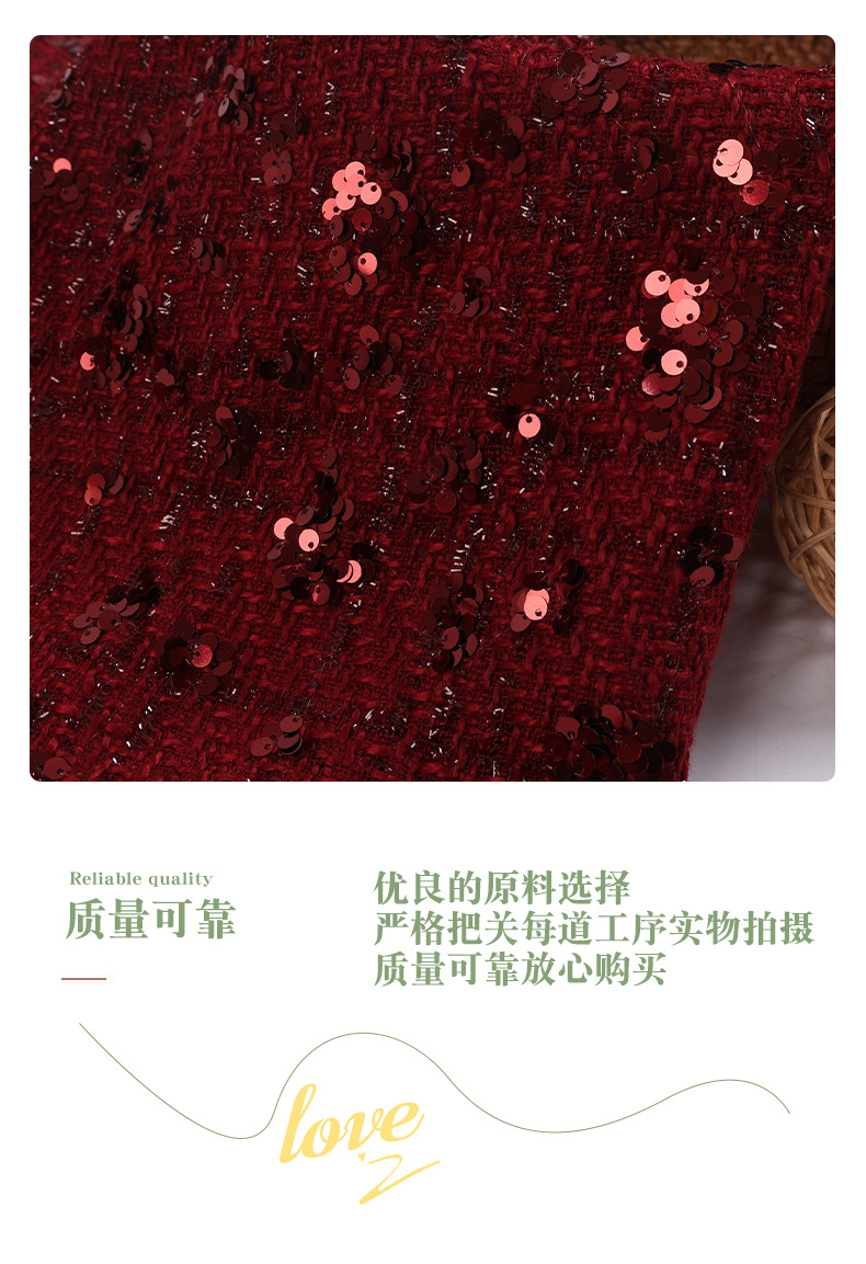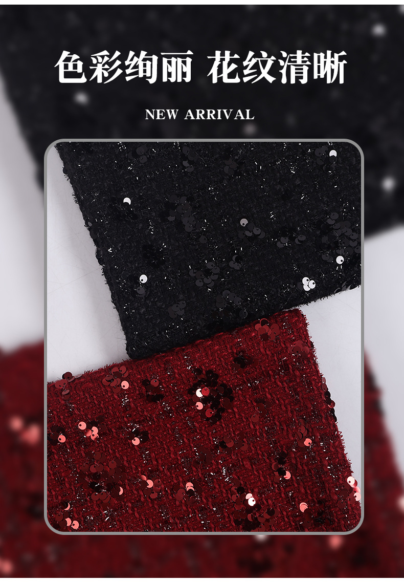 现货涤纶毛呢面料亮片小香风布料服装外套箱包手工diy花呢面料
