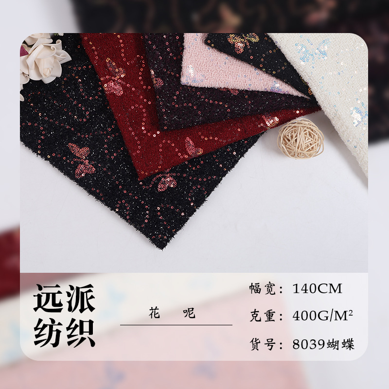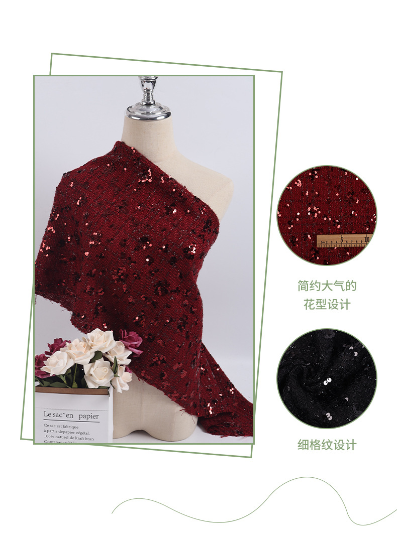 现货莲花片亮片小香风面料秋冬时尚外套女装鞋帽箱包装毛呢布料