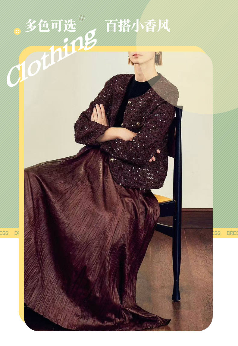 小香風銀糸粗紡生地秋冬金糸毛布婦人服ベストコートスカート大きい服