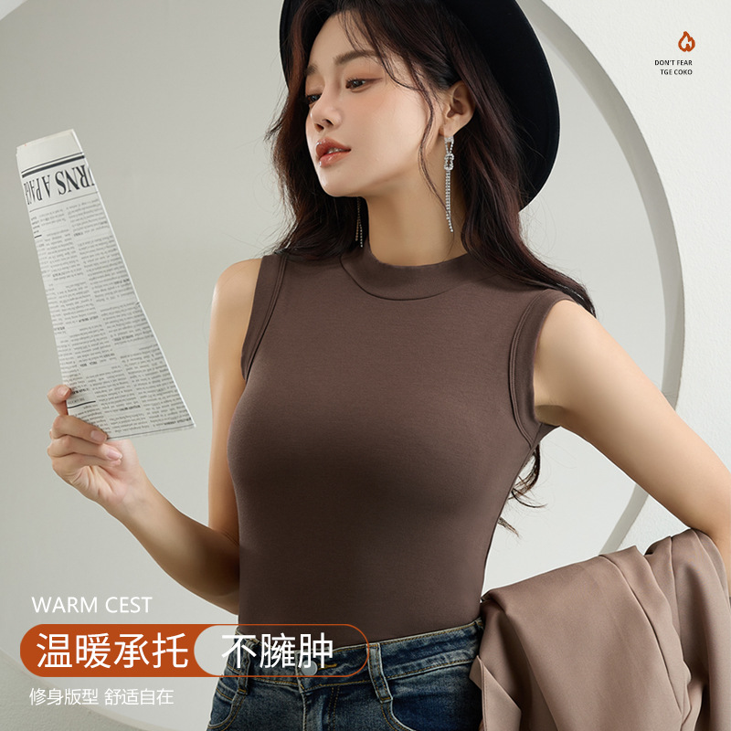 加大加肥半高领带杯垫保暖背心女加绒加厚无袖马甲大码胖mm200斤