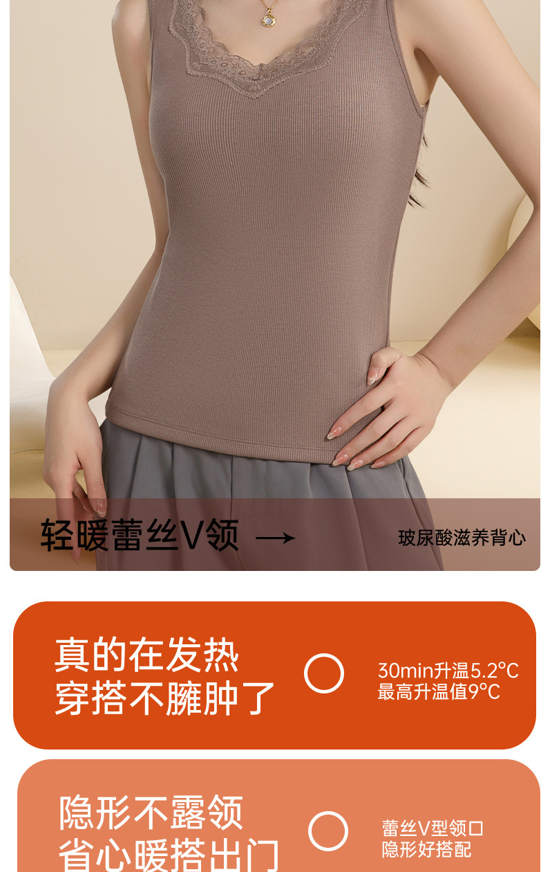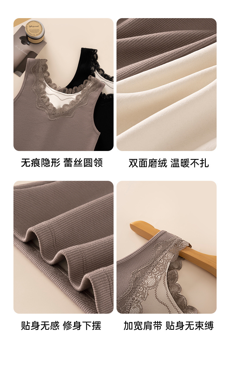 加肥加大码蕾丝v领保暖背心女加绒加厚胖mm200斤内搭冬季打底内衣