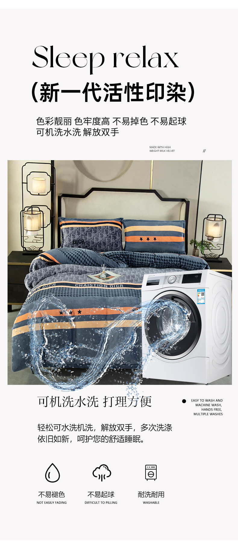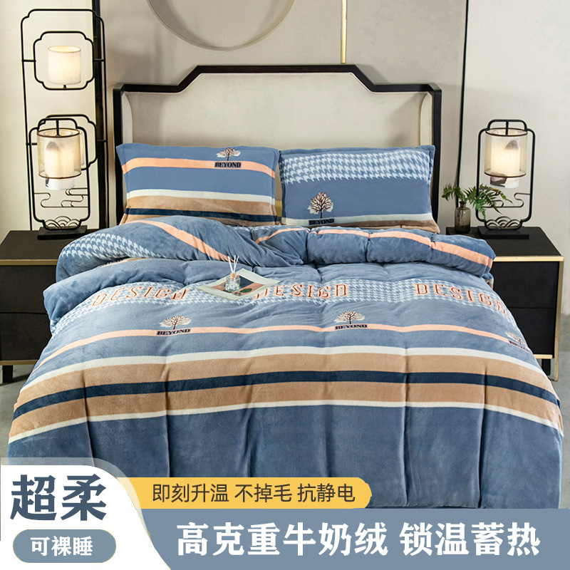牛奶绒四件套a类加绒被套冬季法兰绒床上用品三件套珊瑚绒床单秋