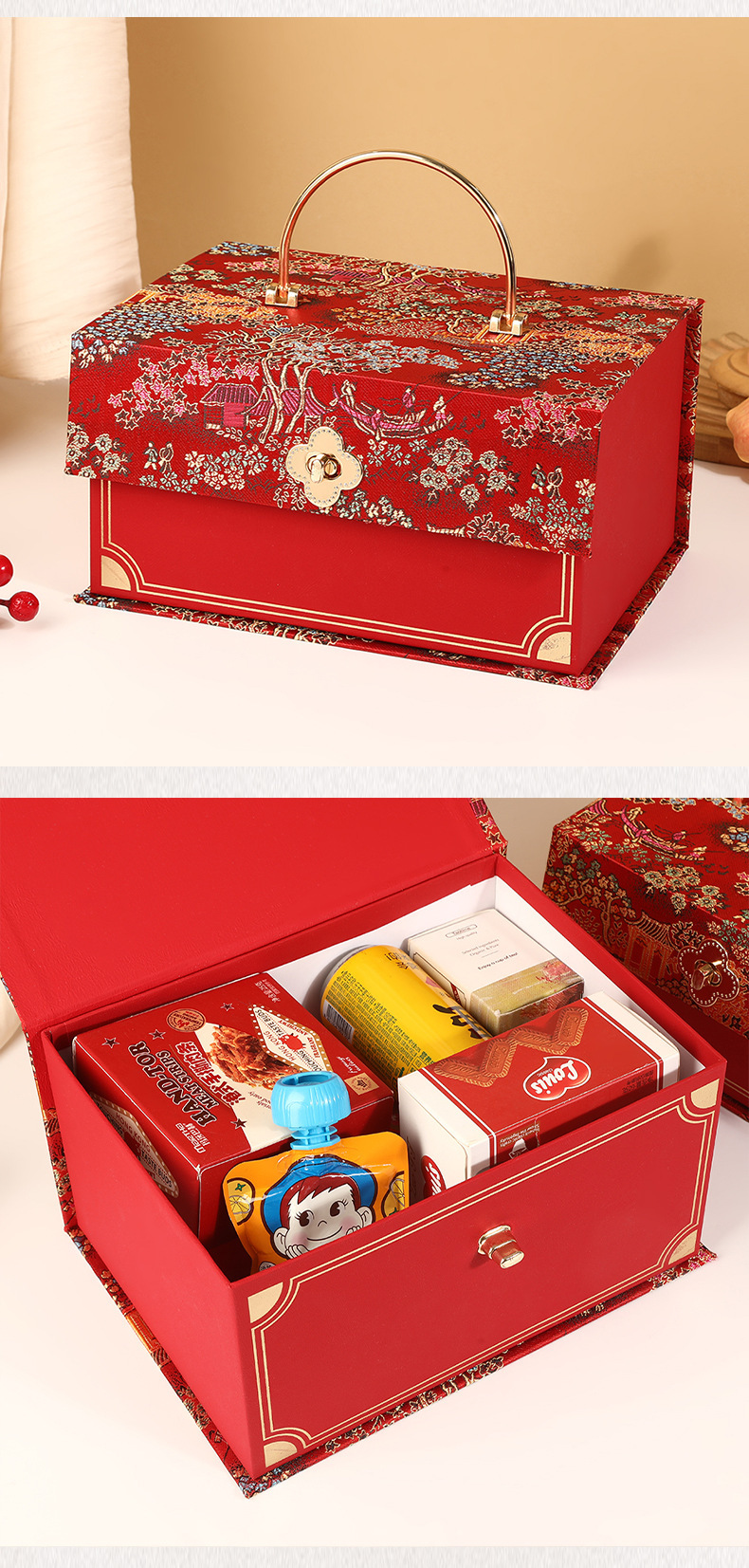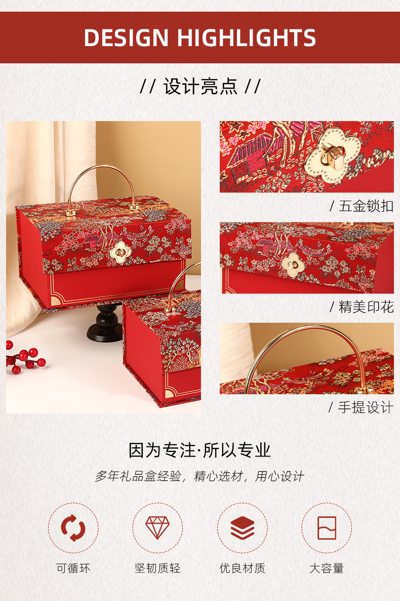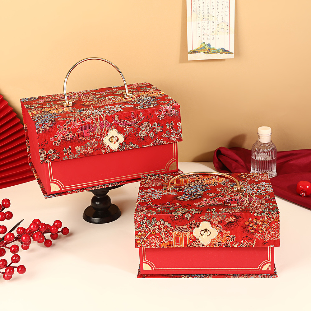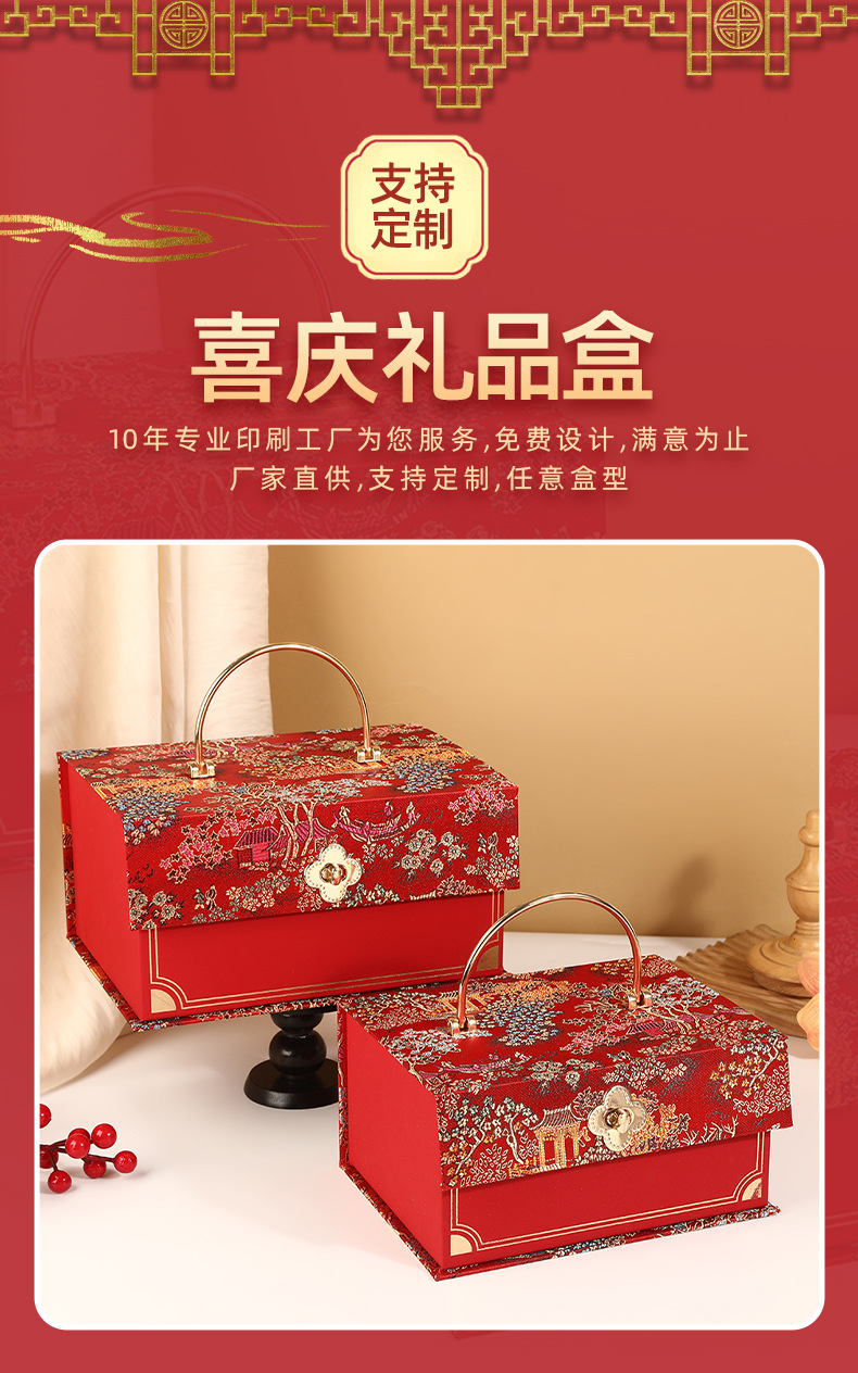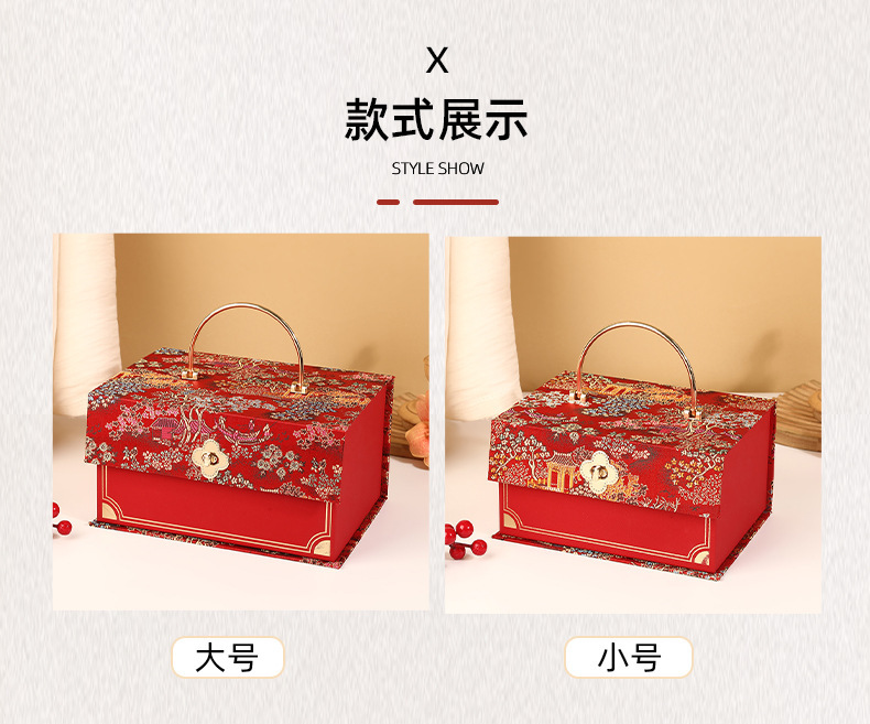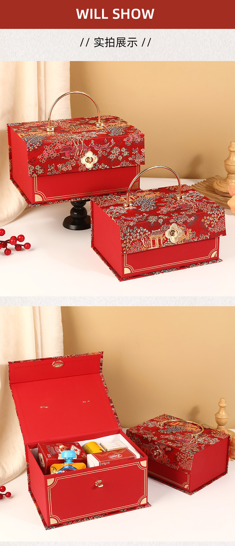 新中式锦缎礼盒婚礼订婚手提伴手礼盒大容量喜糖盒新年过节礼盒