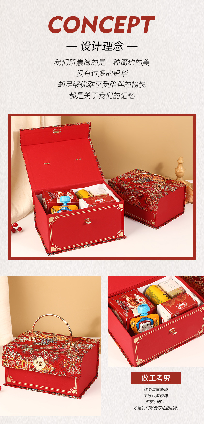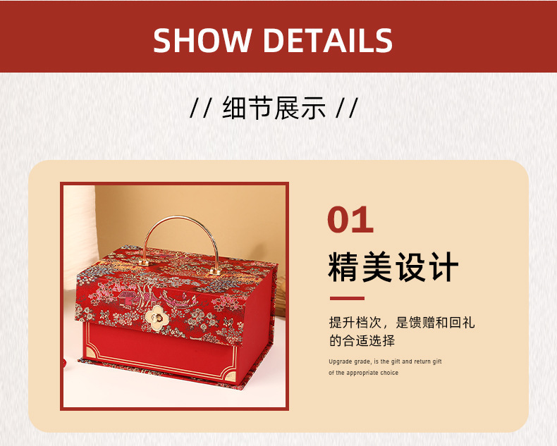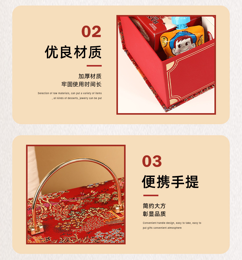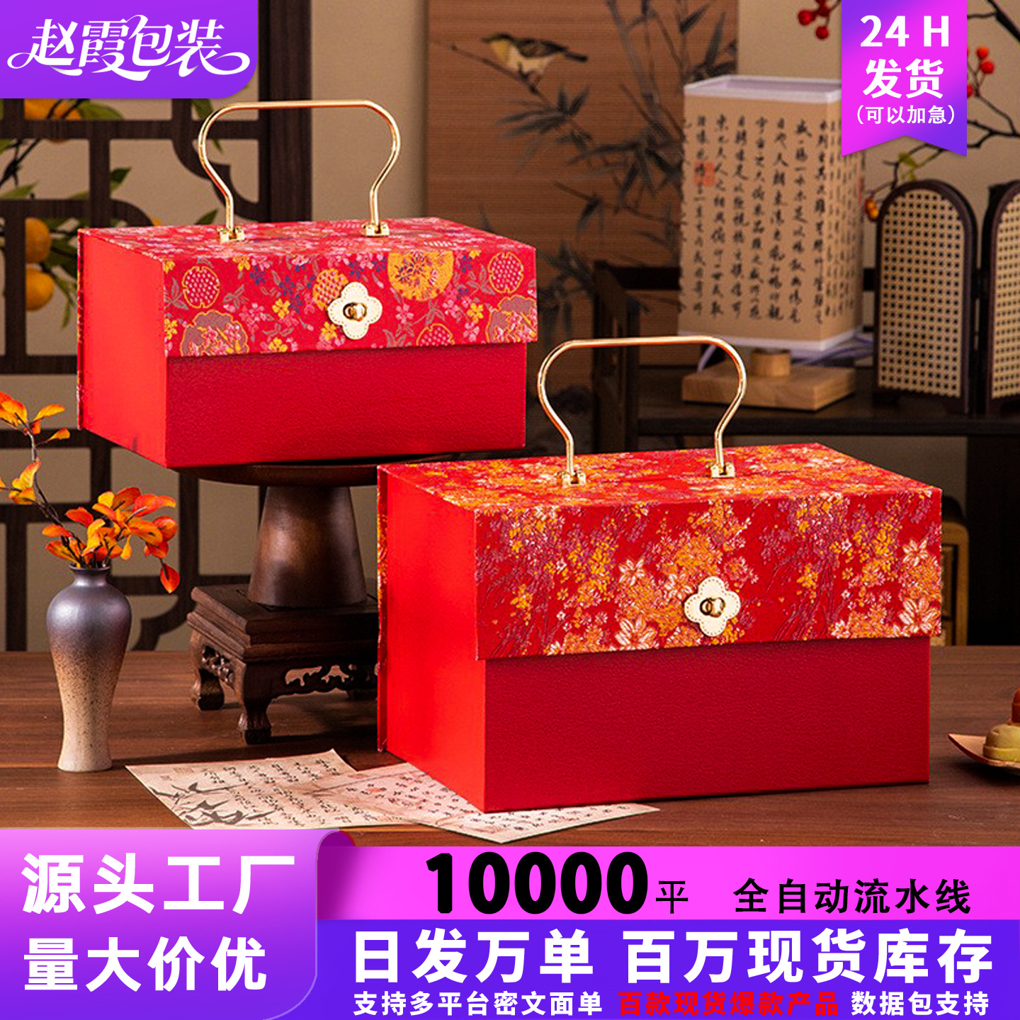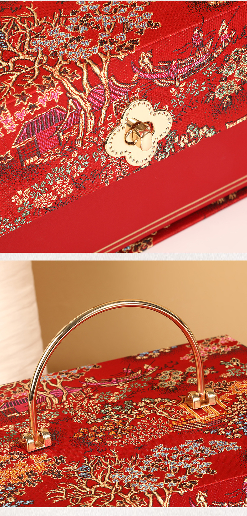 新中式锦缎礼盒婚礼订婚手提伴手礼盒大容量喜糖盒新年过节礼盒