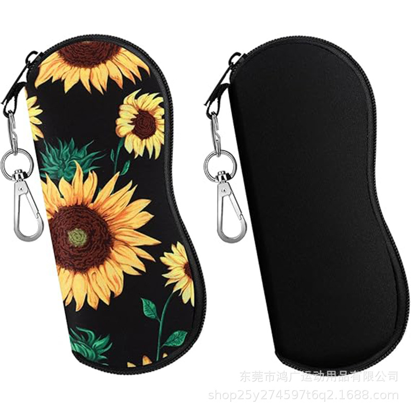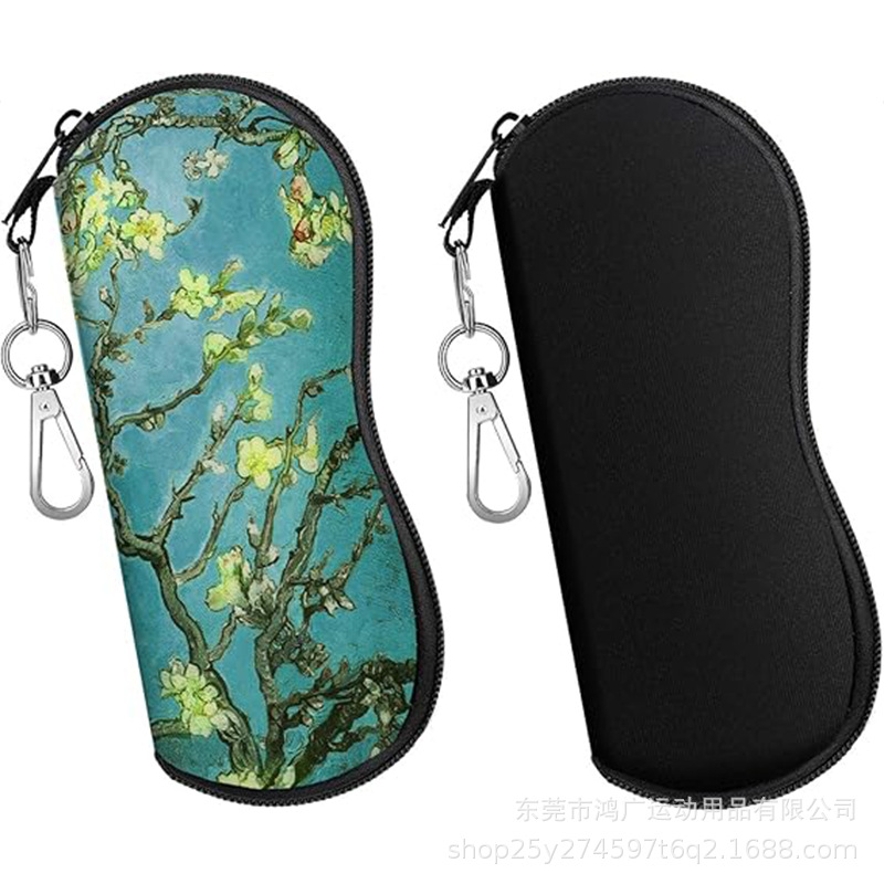 爆款热销潜水料眼镜包时尚印花眼镜袋旅行便携挂钩太阳眼睛盒