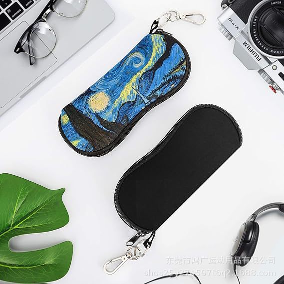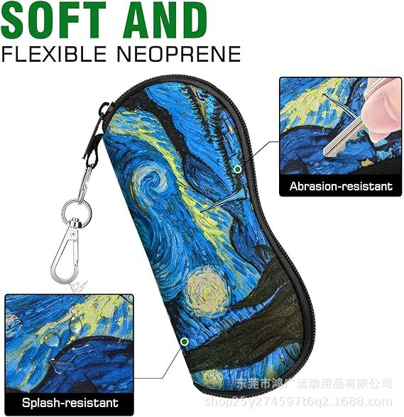 亚马逊热销潜水料时尚印花眼镜袋防摔防水拉链眼镜收纳包带挂钩袋