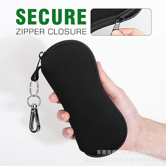 ダイビング素材のサングラスバッグ、旅行用落下防止フック付きジッパー式メガネ収納バッグ、携帯用プリント入りサングラスケース