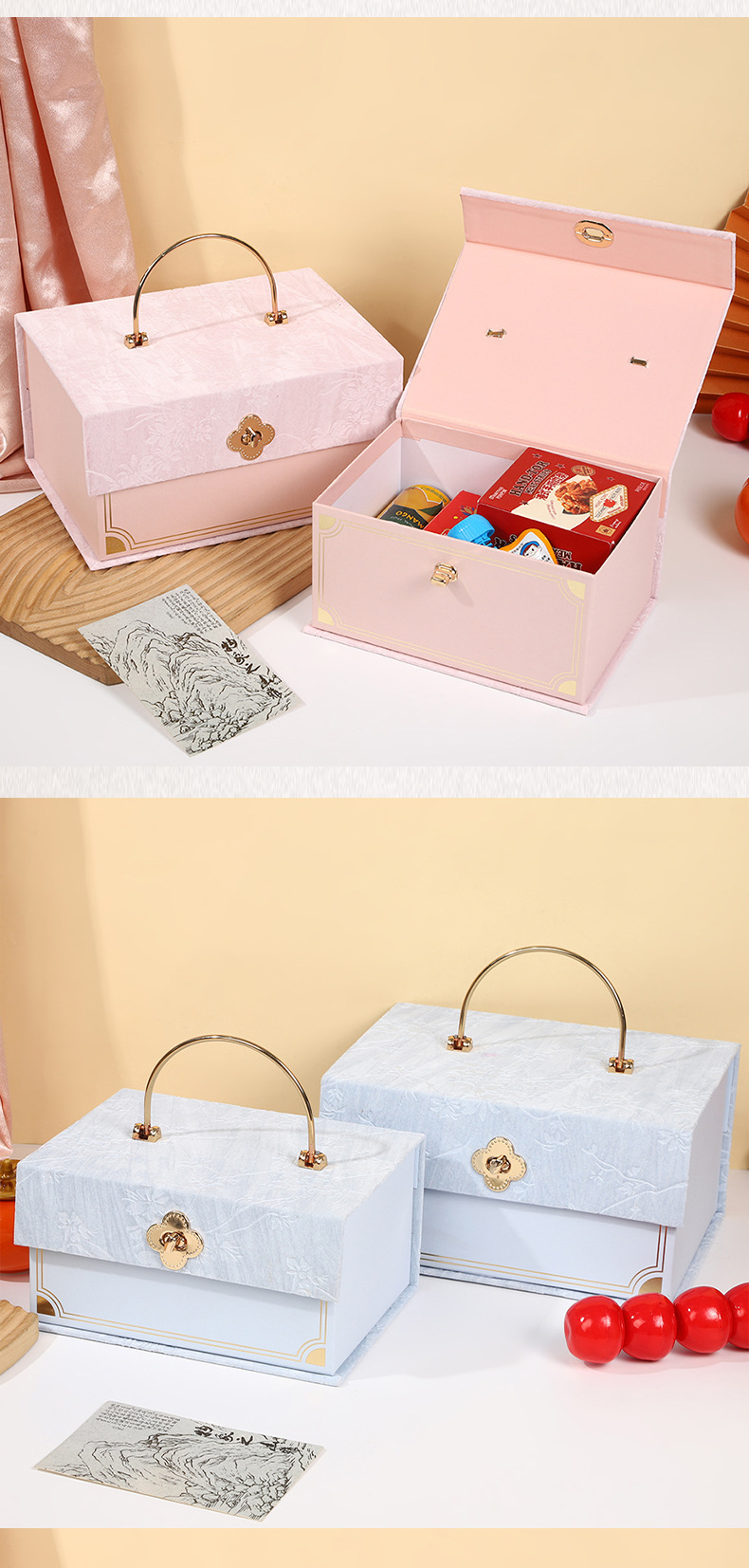 锦缎手提伴手礼盒新中式婚礼喜糖盒订婚礼品盒包装盒空盒复古锦盒