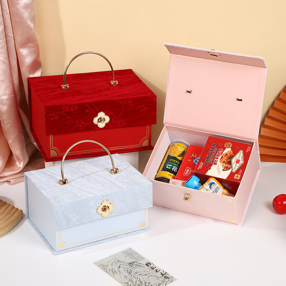 新しい中国式のお土産箱結婚婚約高級ギフトボックスの手提げベルベットのお返しの喜糖箱の空箱