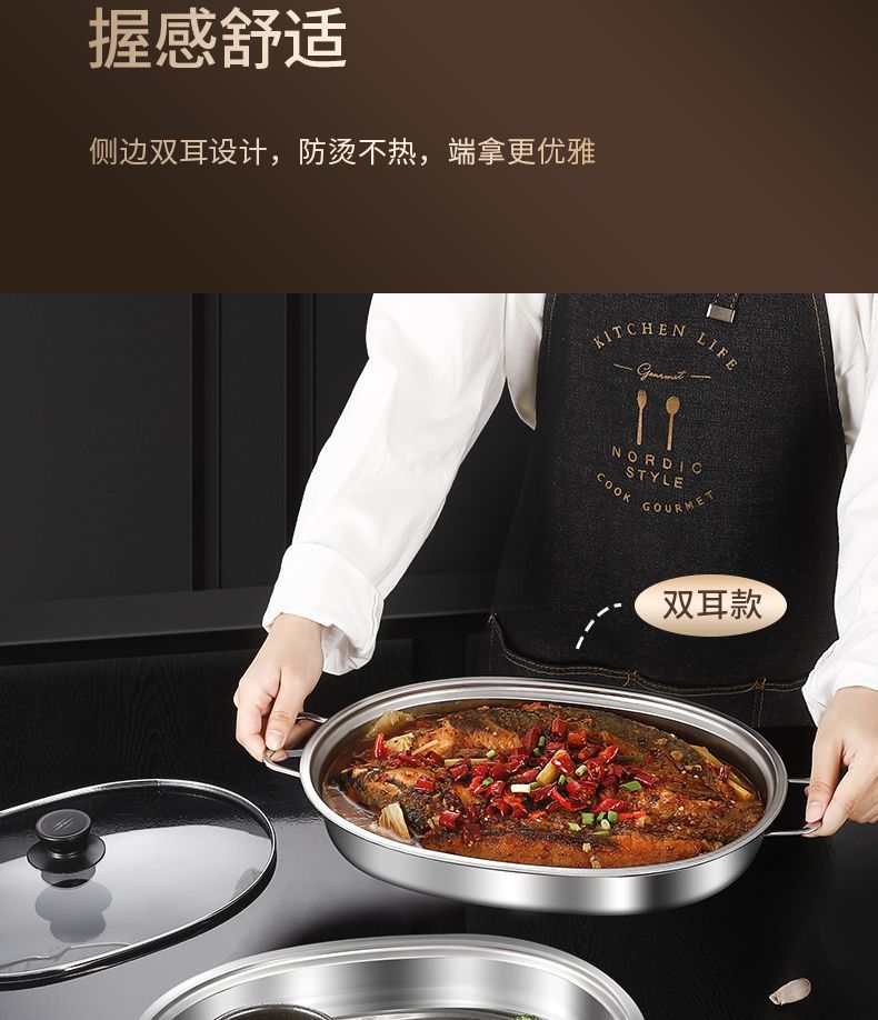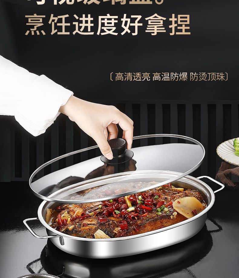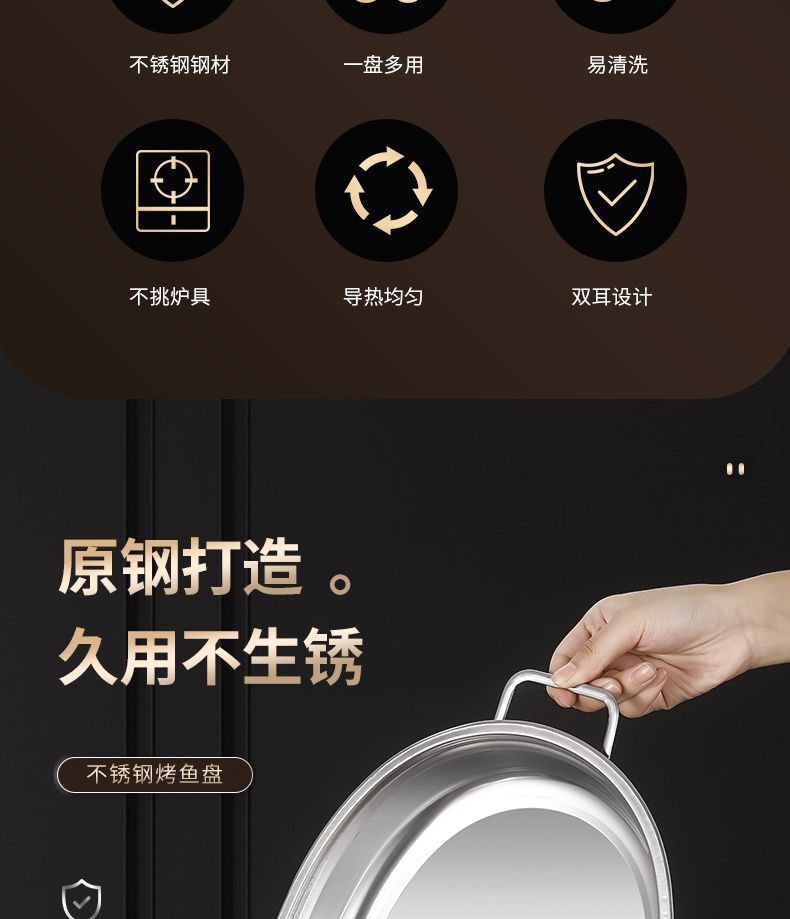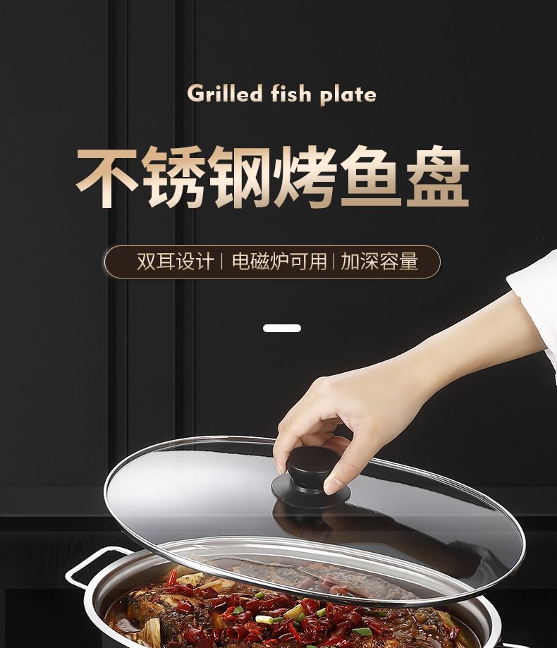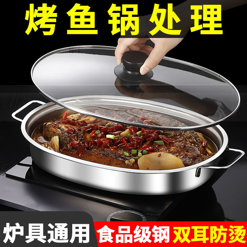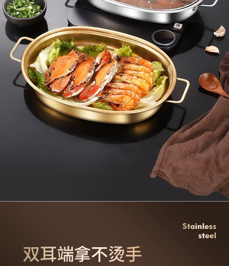 不锈钢烤鱼盘加深蒸盘烤盘涮烤肉盘电磁炉烧烤盘火锅家用商用餐盘