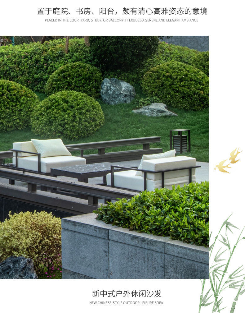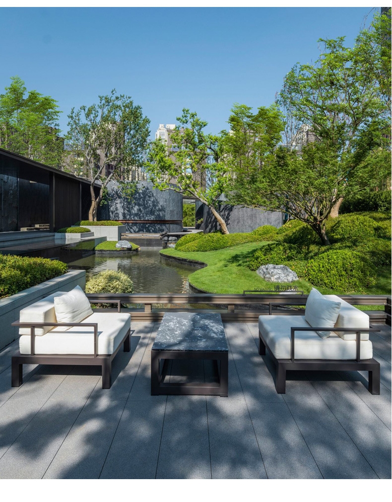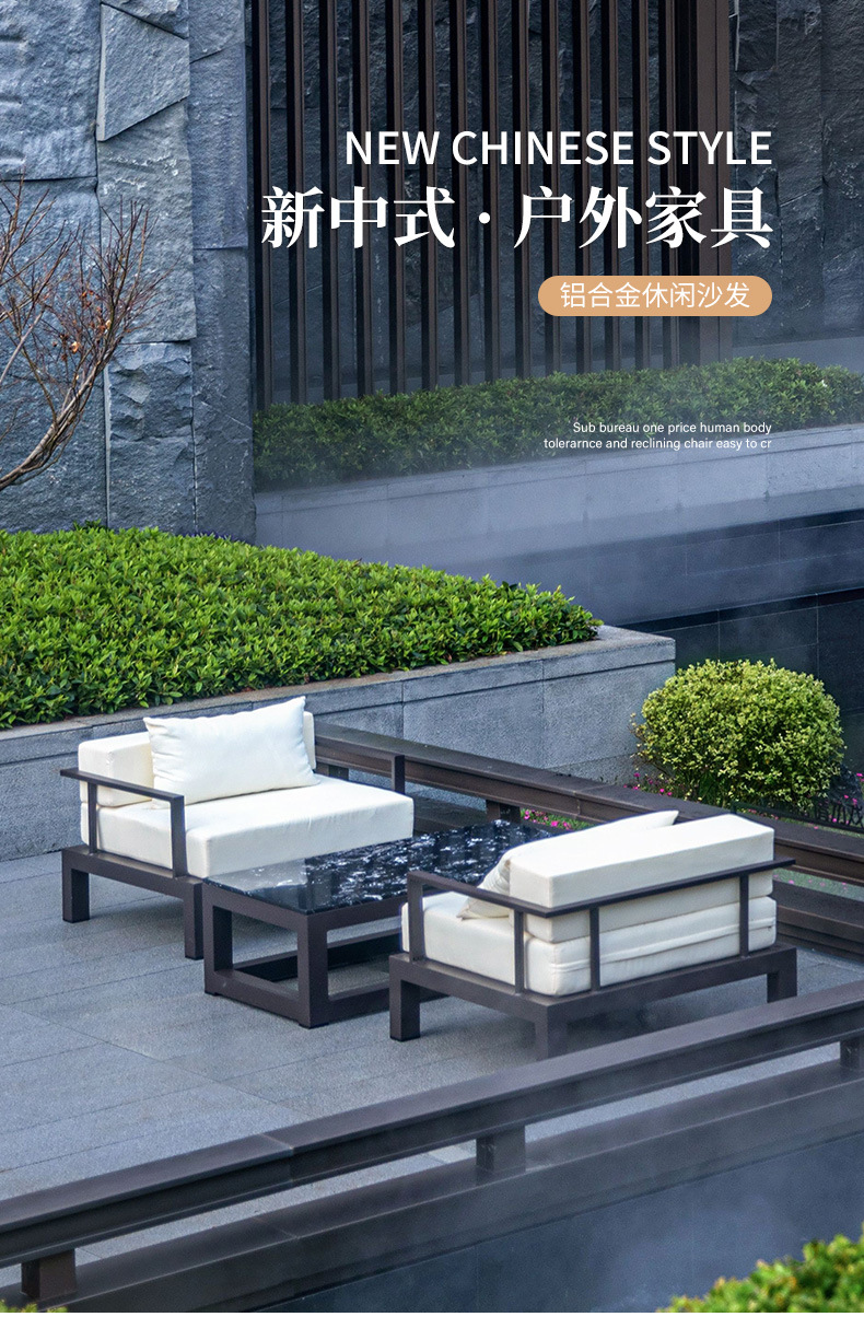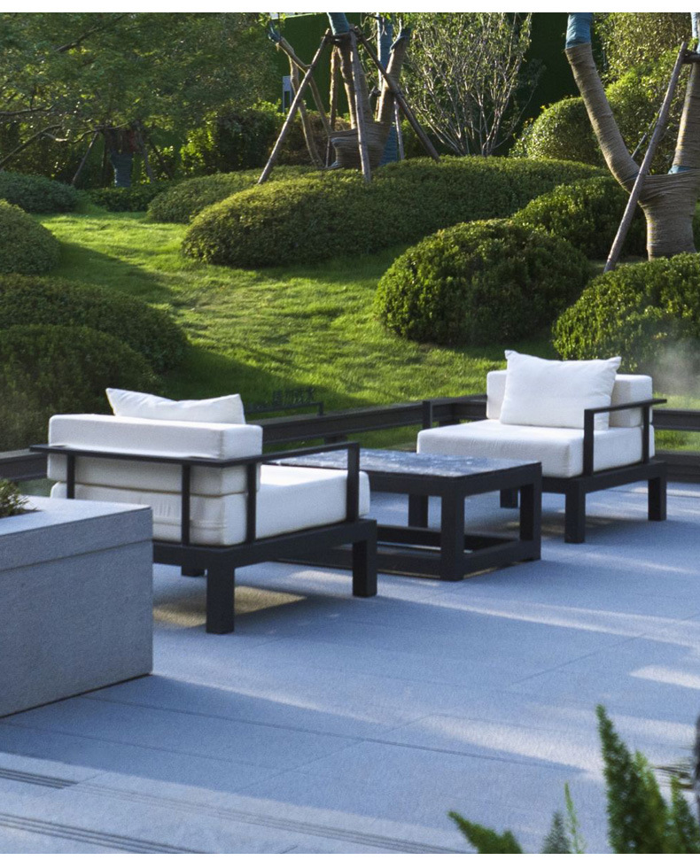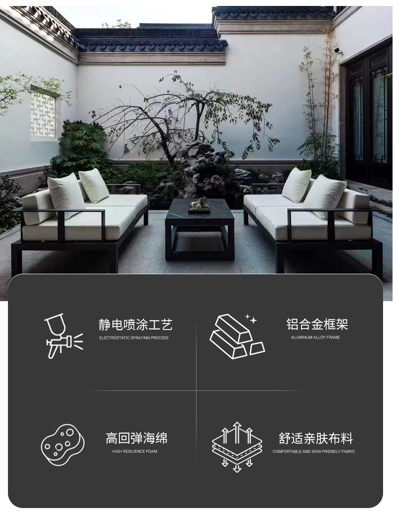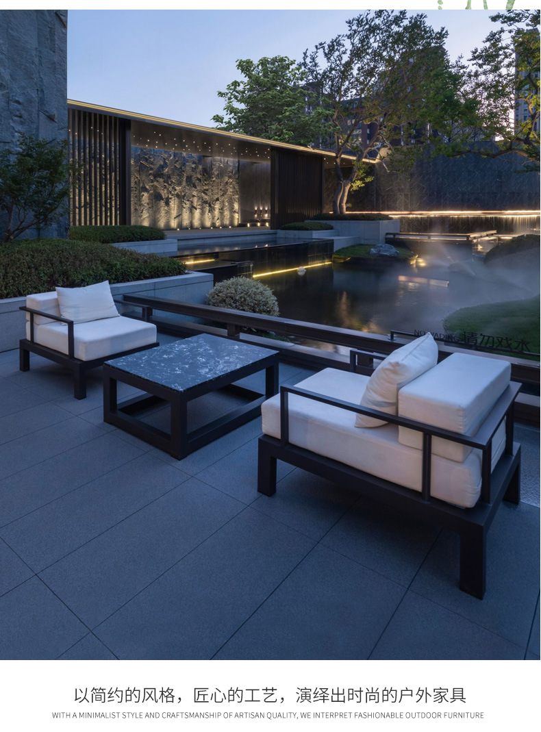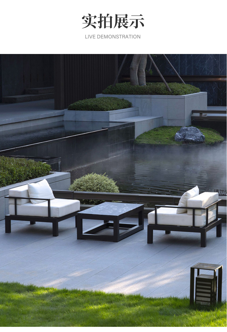 户外新中式庭院组合沙发休闲接待售楼部酒店露台别墅设计岩板家具