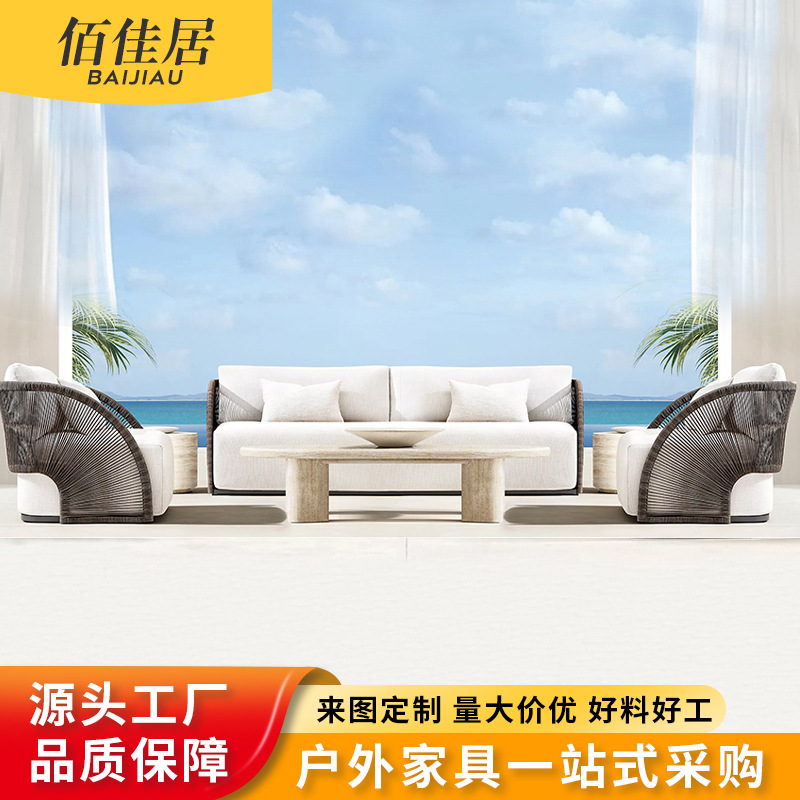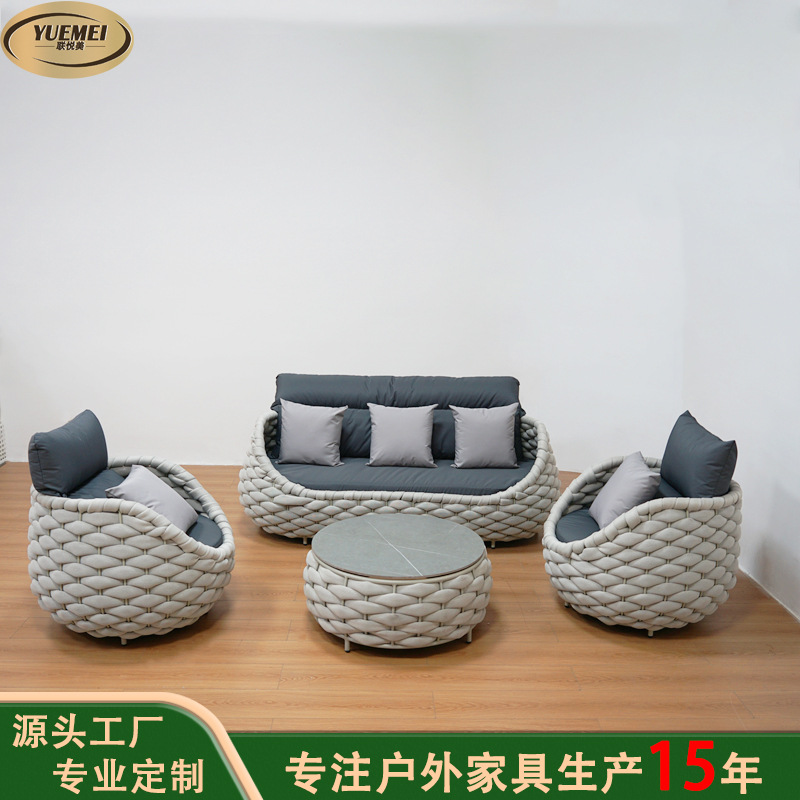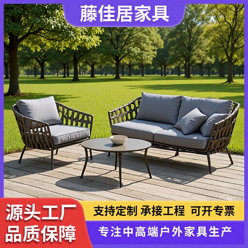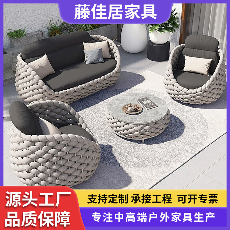 户外沙发庭院花园家具组合别墅阳台露天光房绳编休闲防晒设计师款