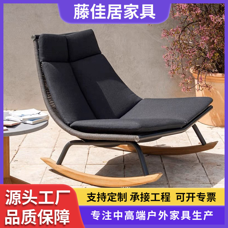 北欧のベランダのリクライニングチェアの屋外の露店の藤編みのテーブルと椅子のシンプルな現代の屋外の椅子のレジャーの庭の花園のロッキングチェア