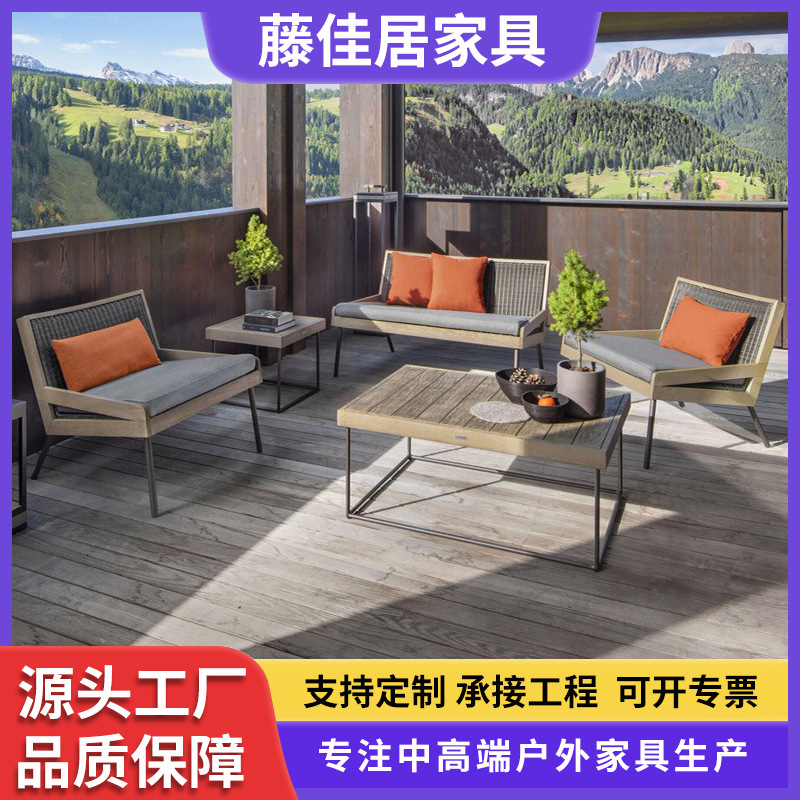 屋外チークソファ中庭組み合わせヴィラレジャー家具屋外防水屋外ガーデンテラス無垢材ソファ