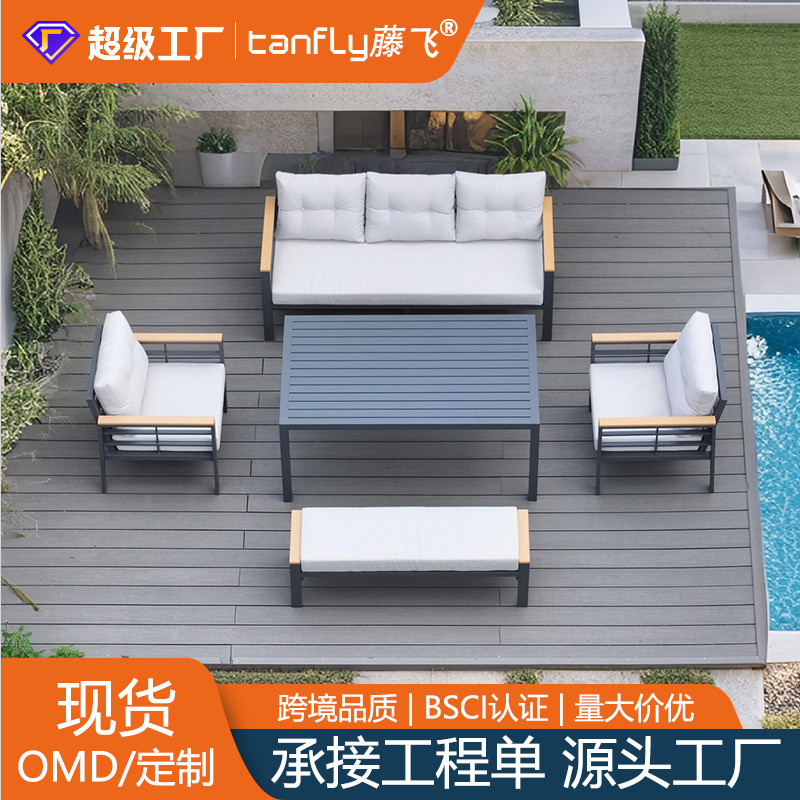 户外沙发别墅公园露台塑木庭院花园户外沙发套装露天轻奢组合沙发