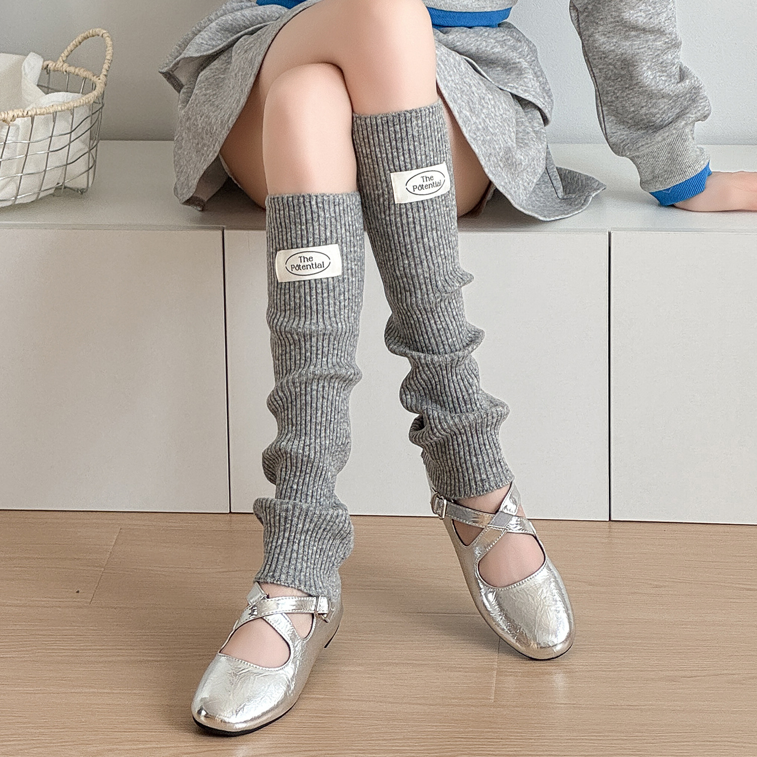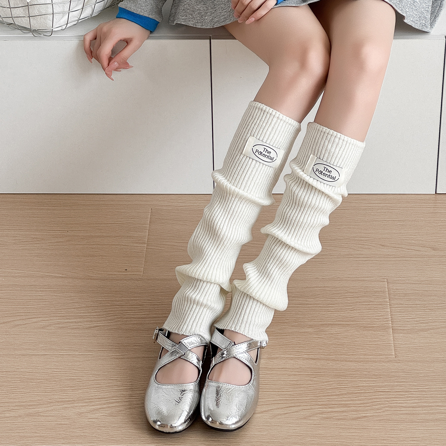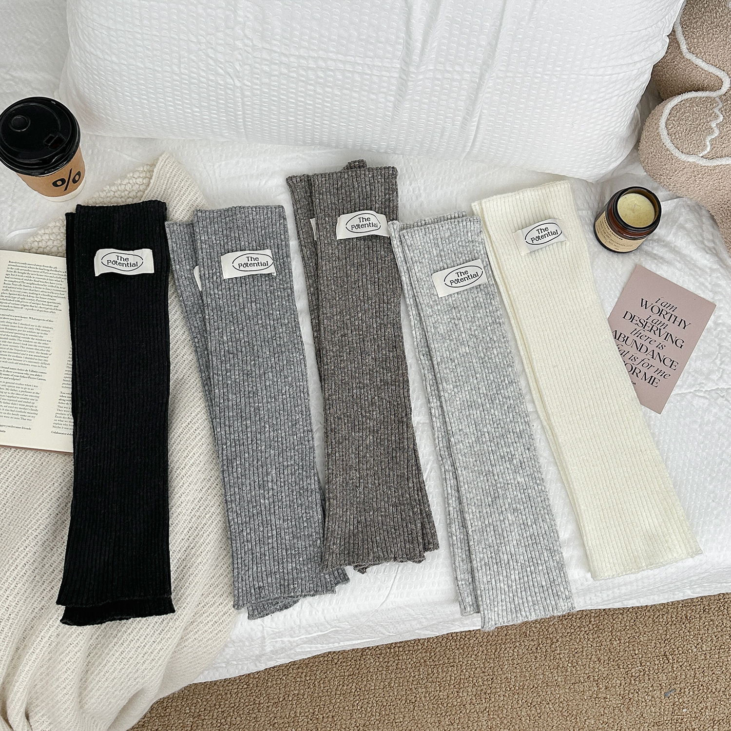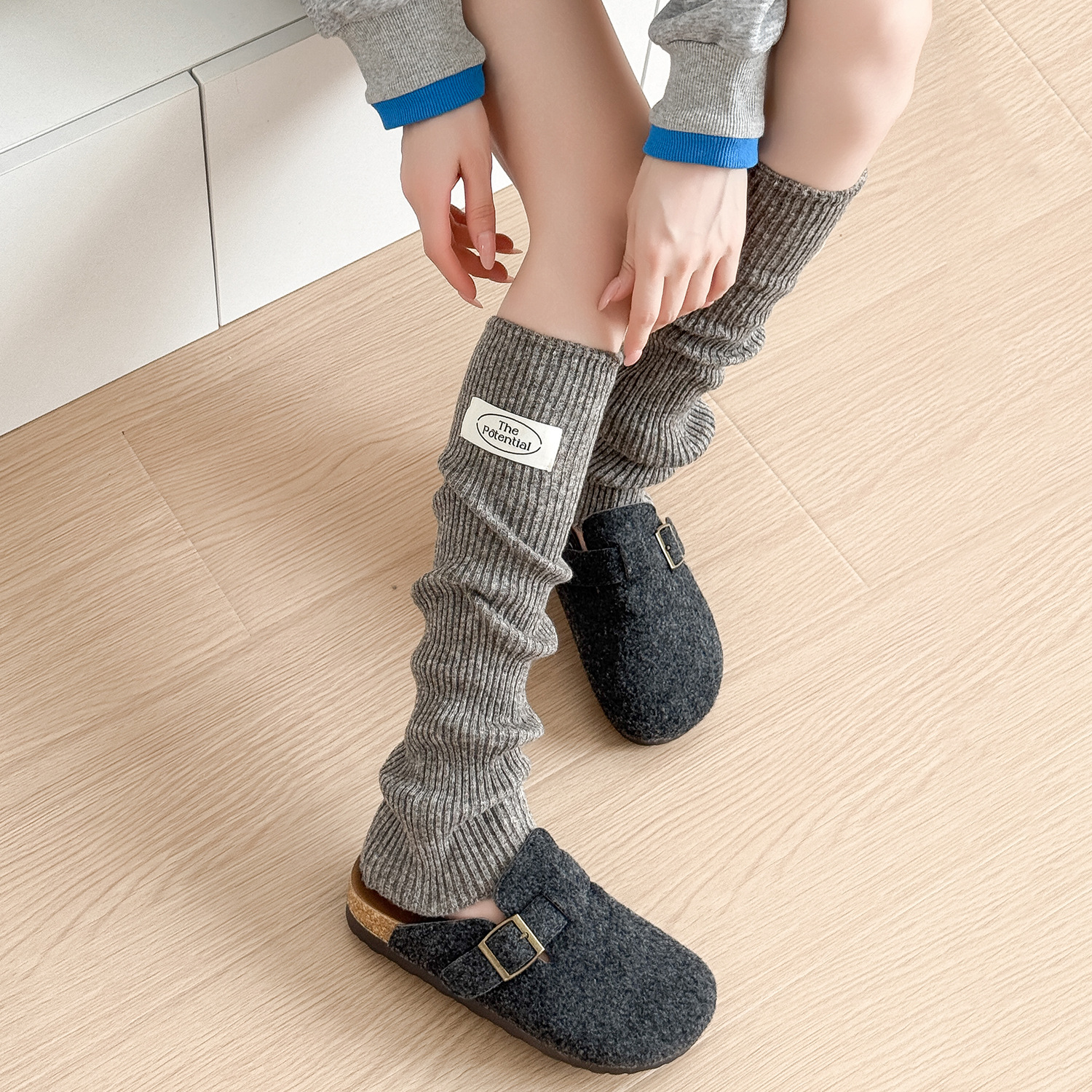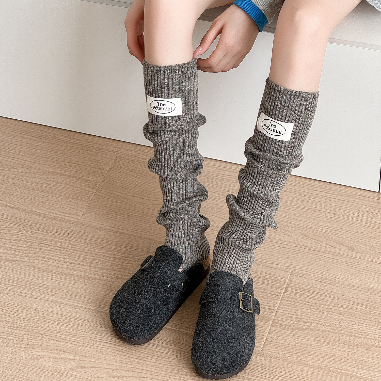 羊毛针织袜套秋冬保暖百搭布标韩式堆堆袜加厚护腿套女中筒袜脚套