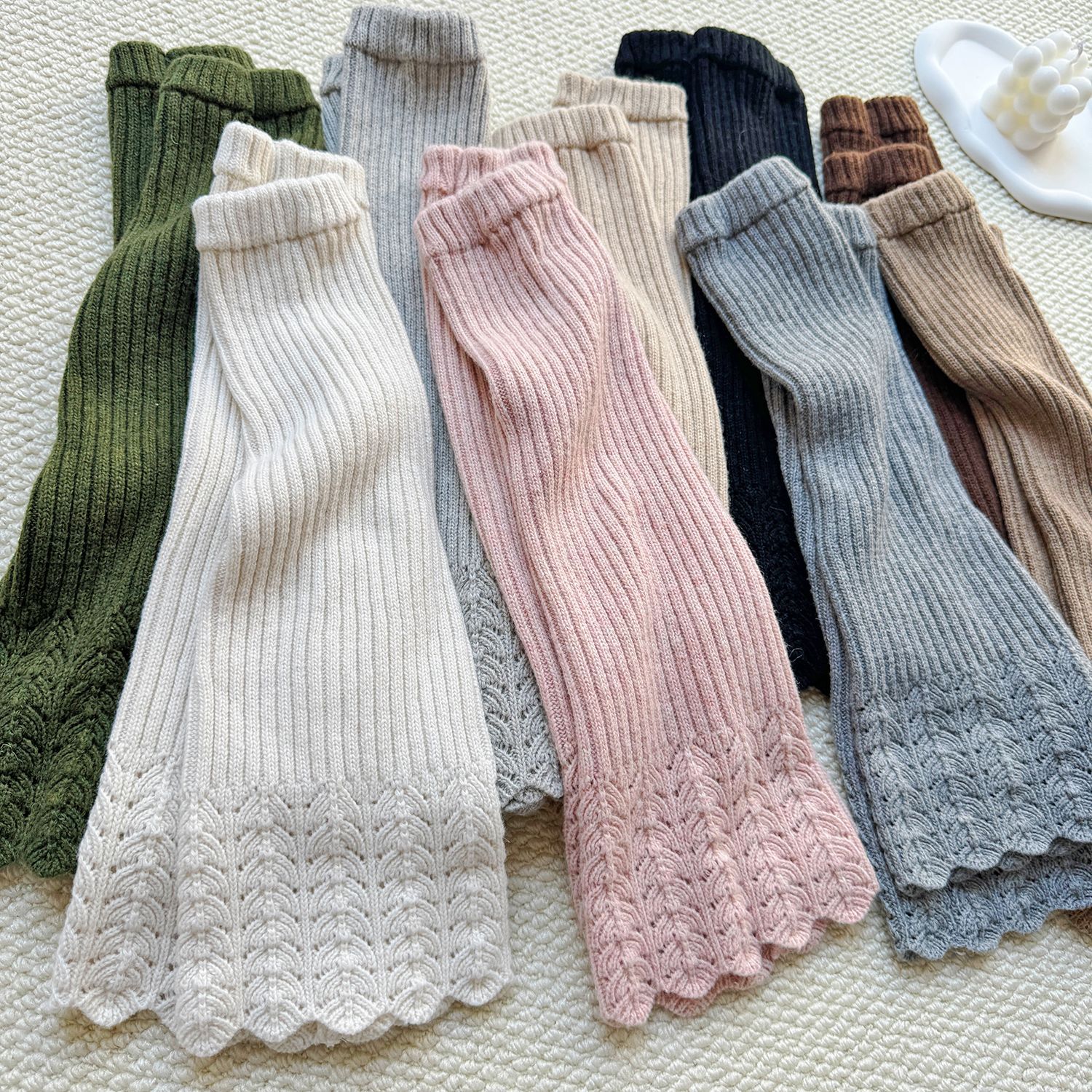 羊毛镂空花边针织袜套微喇竖条纹堆堆袜叠穿秋冬保暖脚套女护腿套