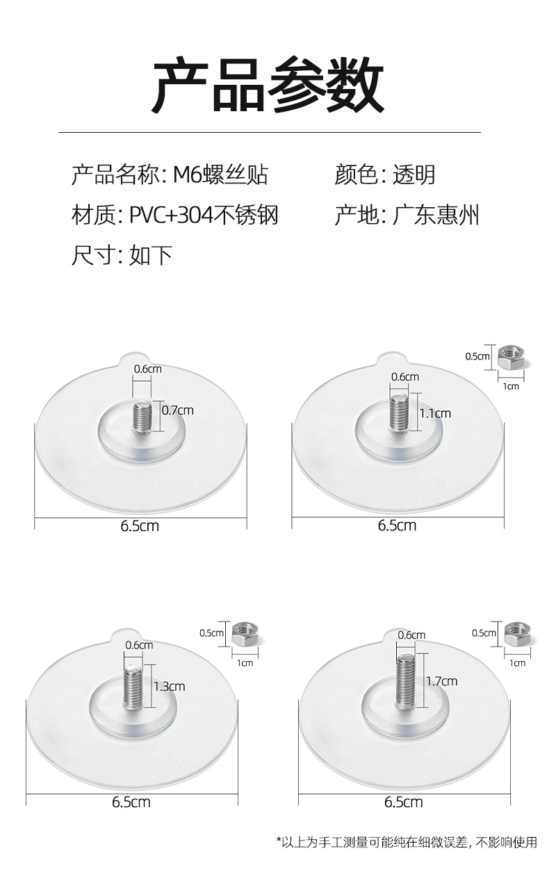 颜色 M6螺丝贴外露长度7mm,M6螺丝贴外露长度11mm(装实木挂钩常用),M6螺丝贴外露长度13mm,M6螺丝贴外露长度17mm