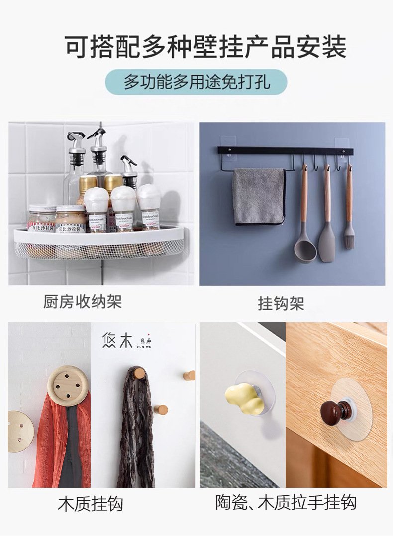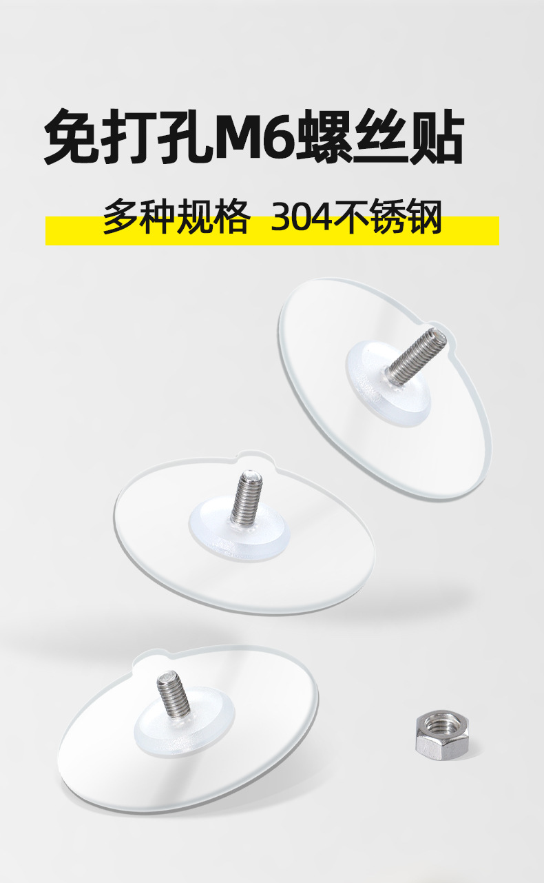 M6螺丝贴免打孔粘钩实木挂钩拉手无痕贴钉配件浴室强力防水置物架