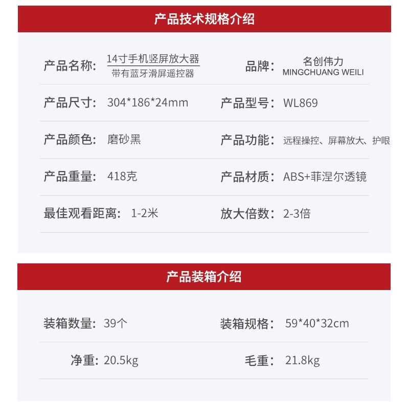 14寸竖屏手机屏幕放大器带遥控家用刷视频高清投屏桌面手机放大器