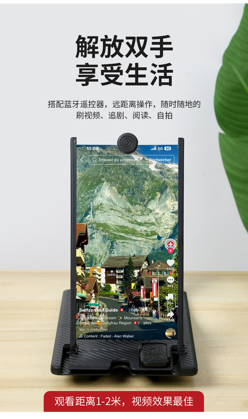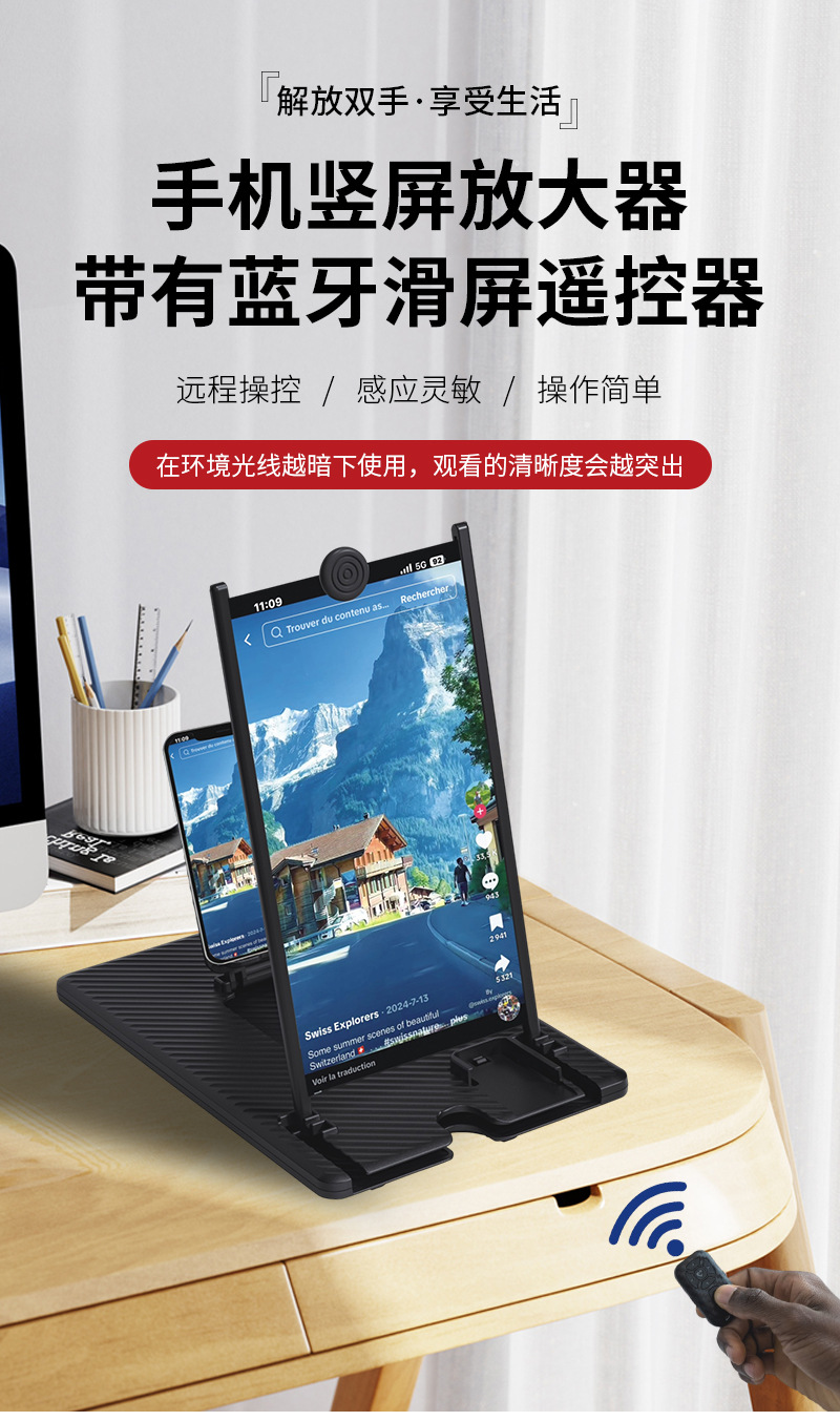 12寸竖屏手机屏幕放大器高清投屏带蓝牙遥控刷抖音懒人手机支架