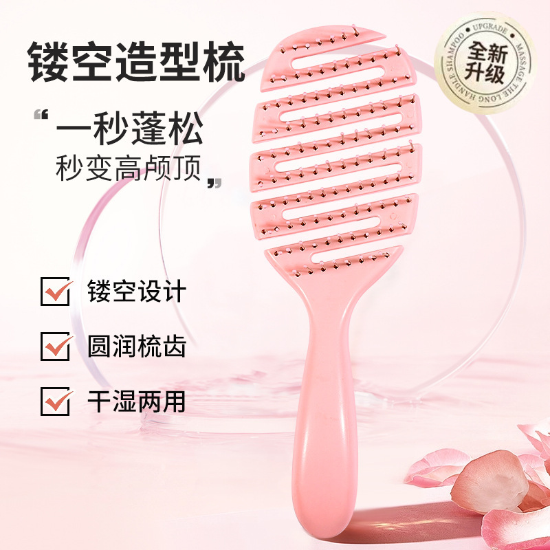镂空新款Z形梳女士美发专用厂家批发蓬松防静电弧形梳干湿两用梳