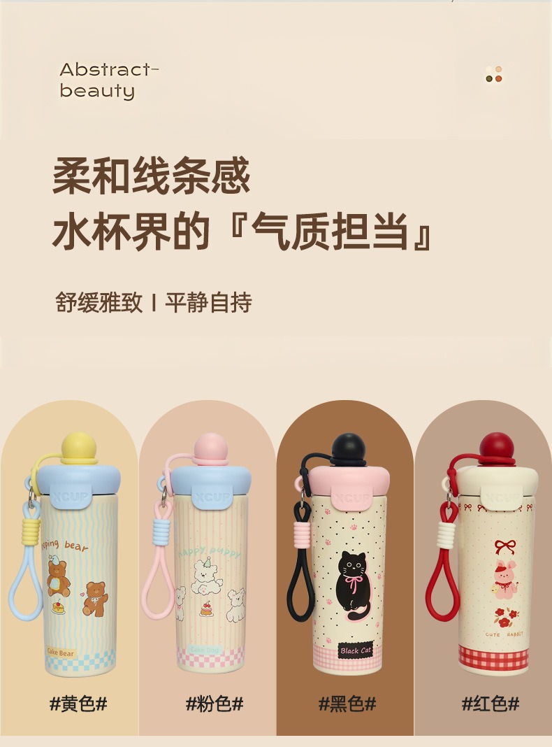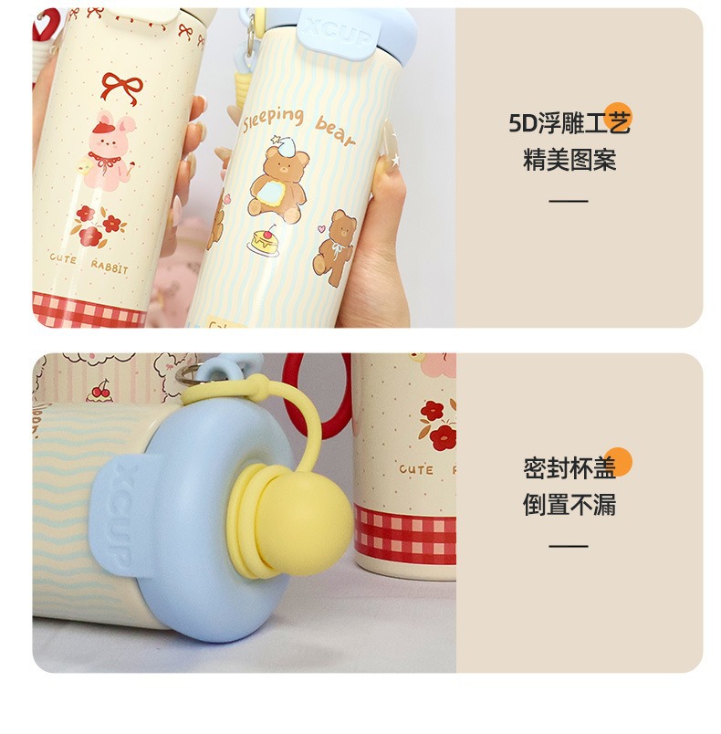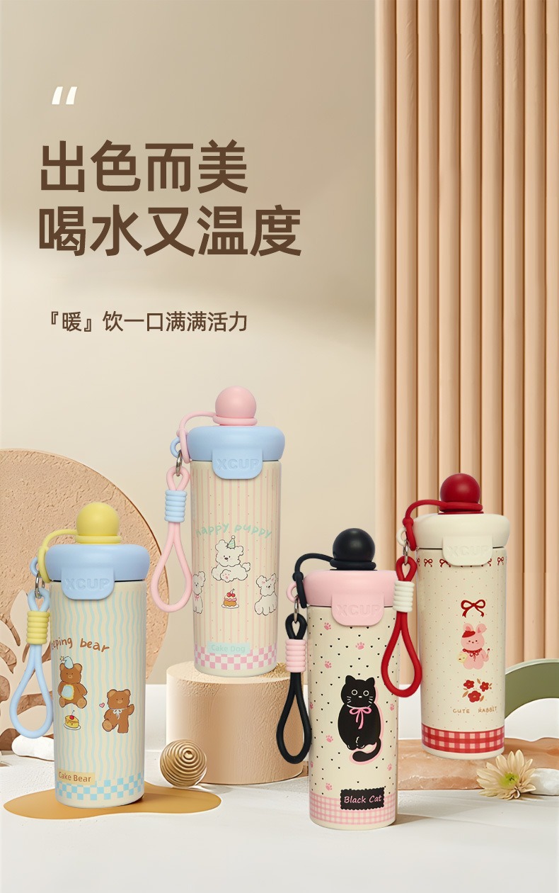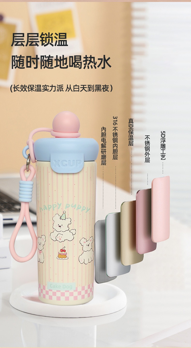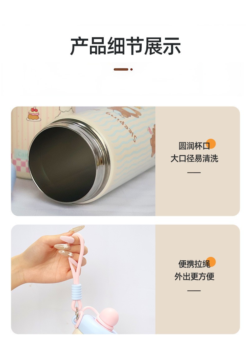 新款浮球杯316不锈钢保温杯大容量水杯卡通高颜值便携提绳吸管杯