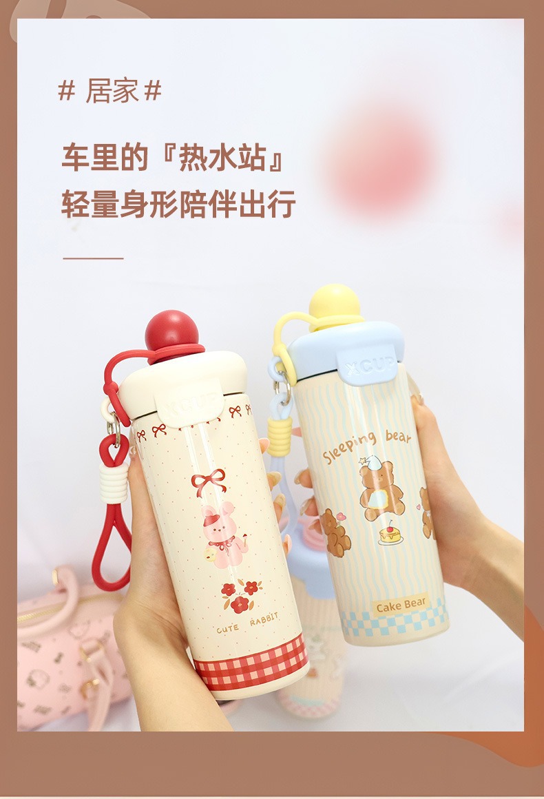 316不锈钢浮球吸管保温杯女高颜值便携提绳卡通可爱便携水杯批发