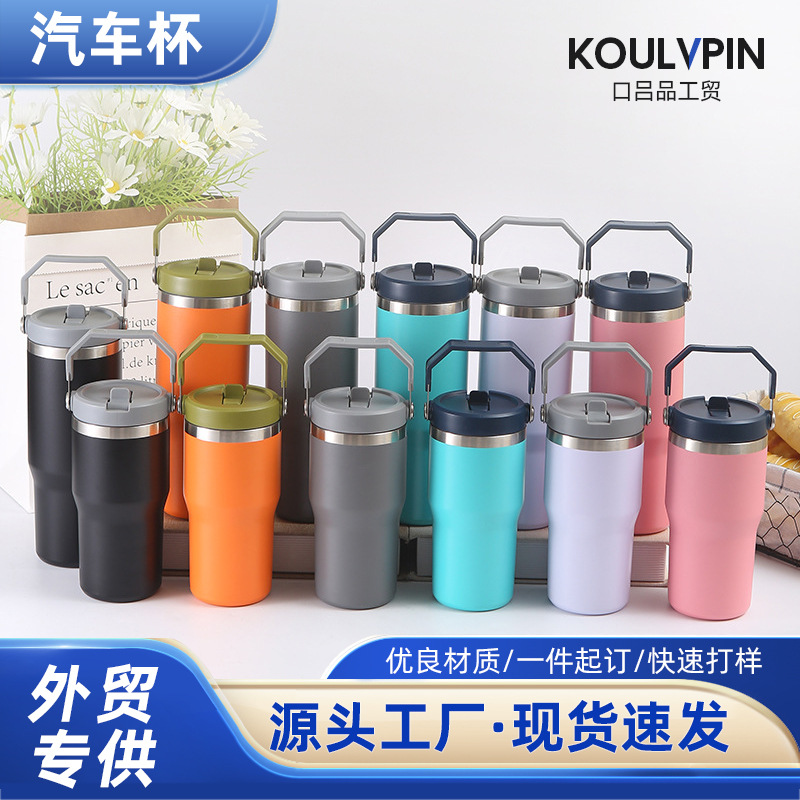 外贸新款3020oz不锈钢手提汽车杯水杯鸭嘴吸管车载保温杯保冷冰霸