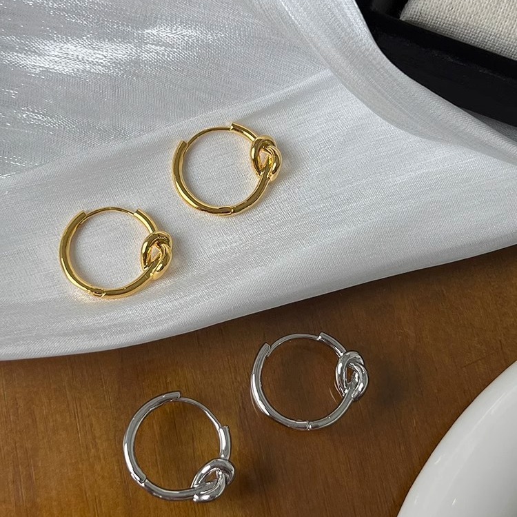 法式金属打结圆形耳圈高级感小众设计复古素圈耳环耳饰女