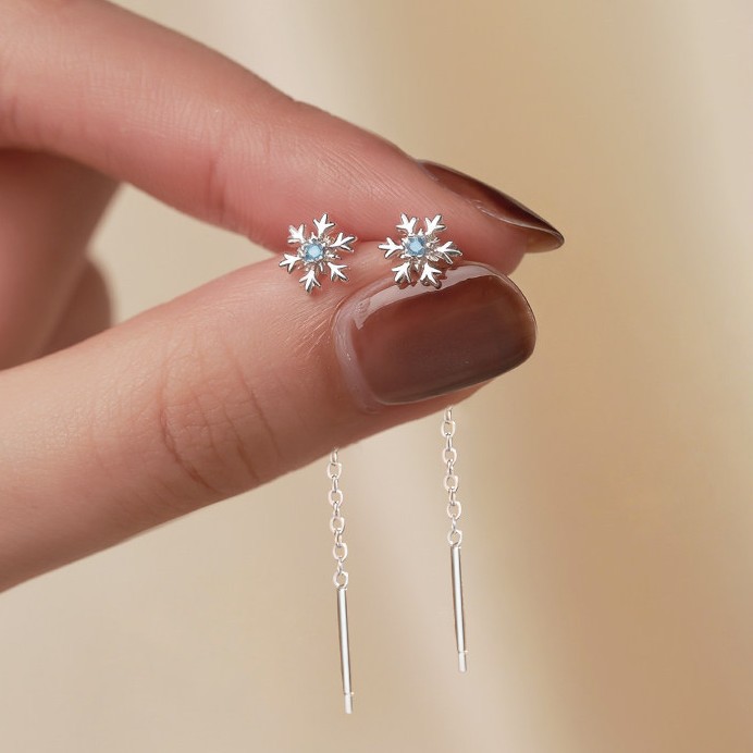 蓝色雪花耳线女2026新款小众设计精致冬季氛围感耳钉耳饰迷你清新