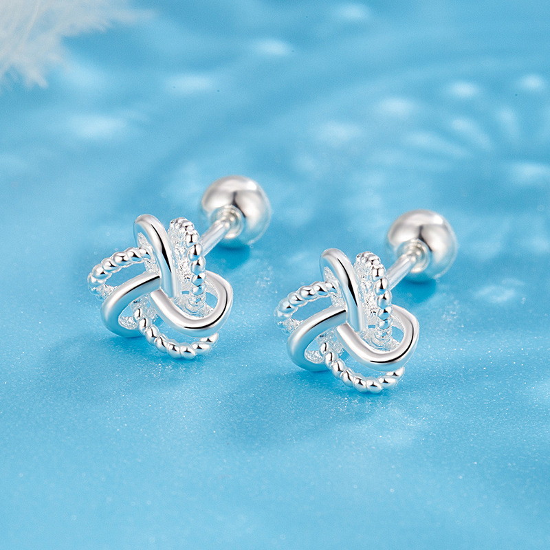 新款环缠绕耳钉圆球拧螺丝耳饰品简约高级日常百搭个性精致小巧女