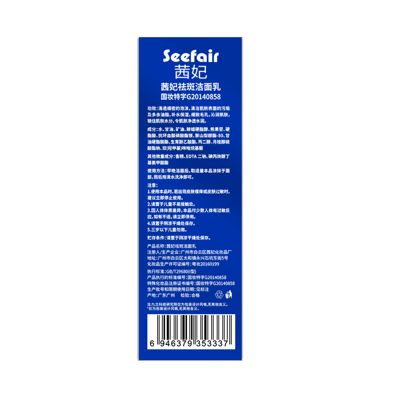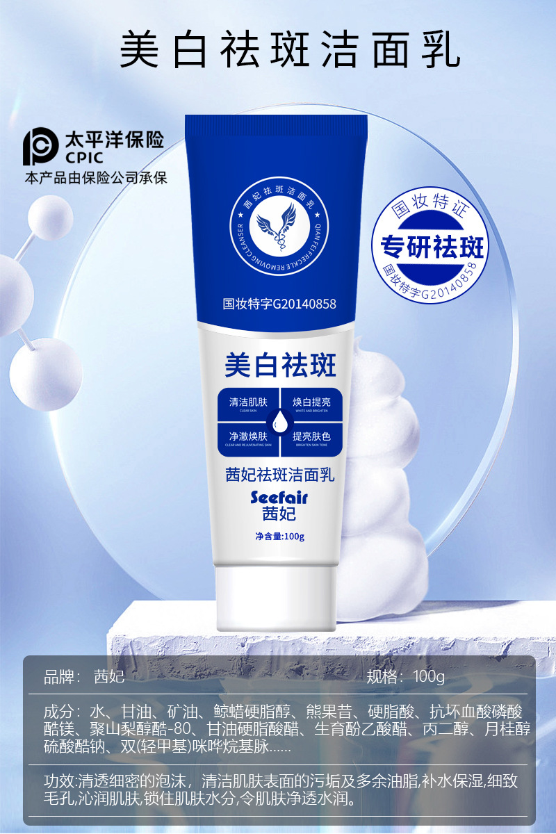 特妆产品名称 茜妃祛斑洁面乳