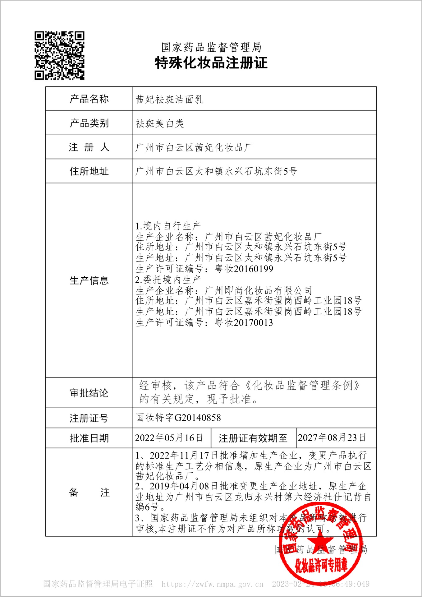 特殊用途化妆品证号 国妆特字G20140858