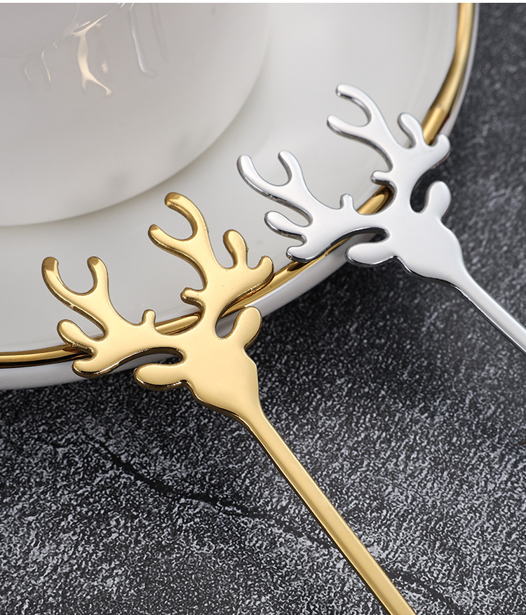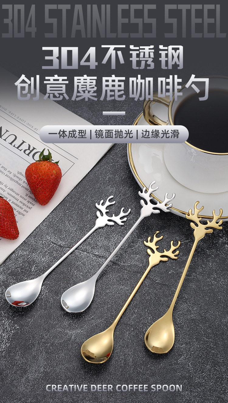 不锈钢勺子麋鹿勺跨境网红圣诞勺咖啡搅拌勺餐具圣诞北欧麋鹿调羹